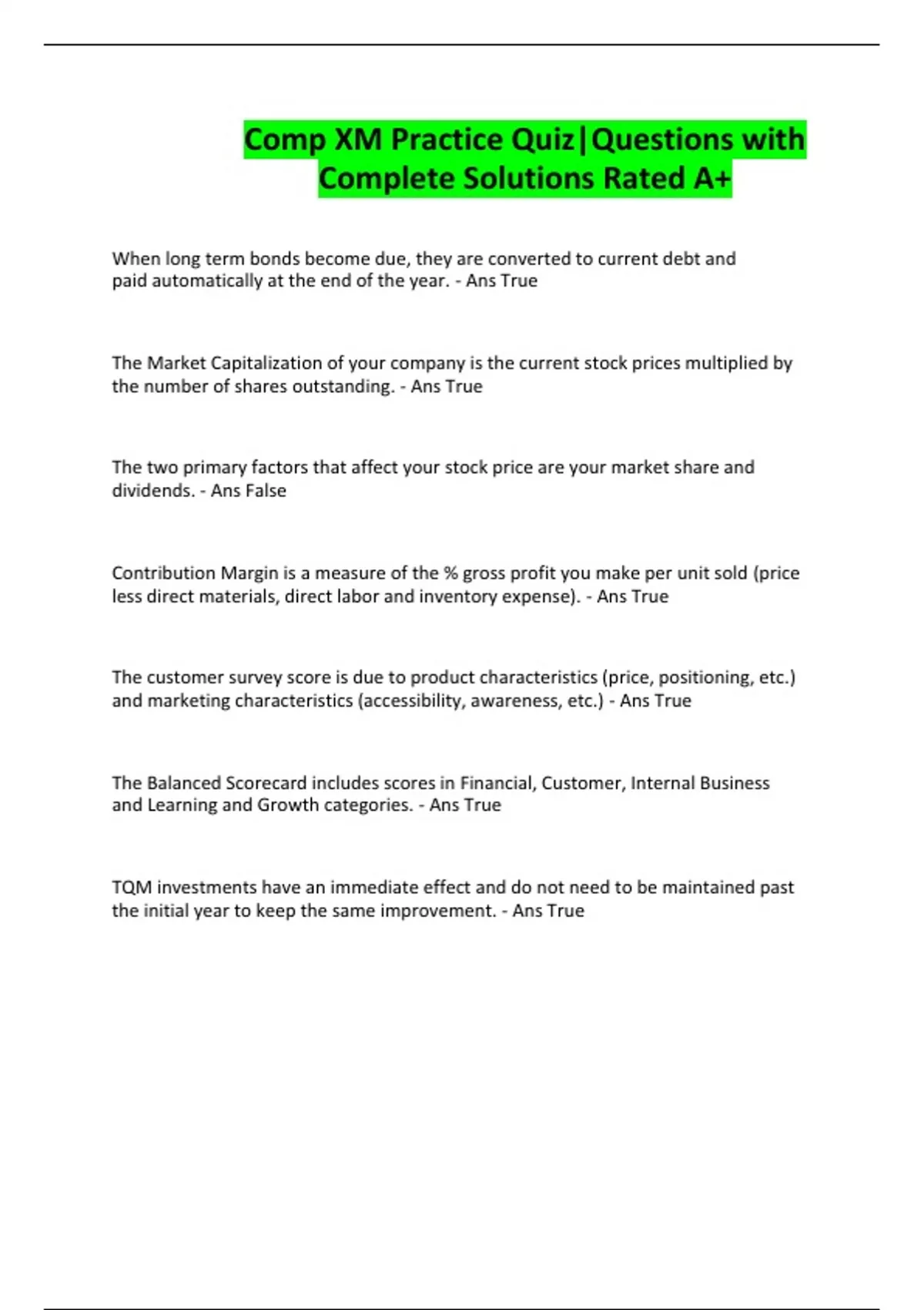 Comp XM Practice Quiz|Questions with