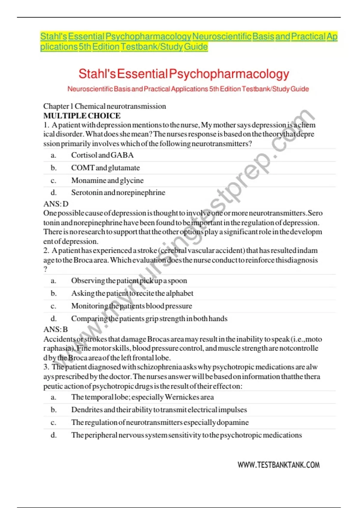 NeuroscientifictBasistandtPracticaltApplicationst 5thtEditiontTestbank/StudytGuide