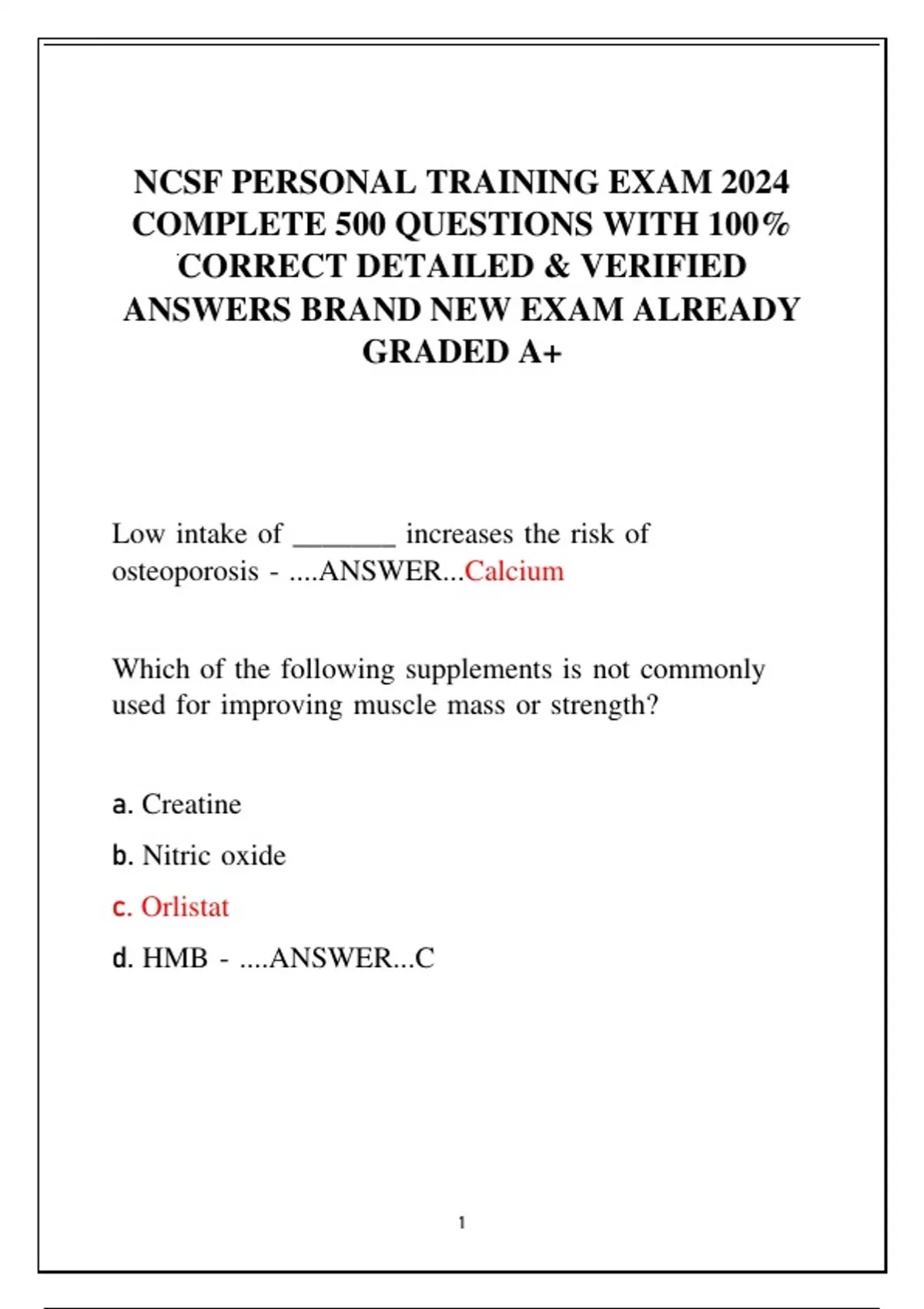 NCSF PERSONAL TRAINING EXAM 2024 COMPLETE 500 QUESTIONS WITH 100% CORRECT DETAILED & VERIFIED ANSWERS BRAND NEW EXAM ALREADY GRADED A+