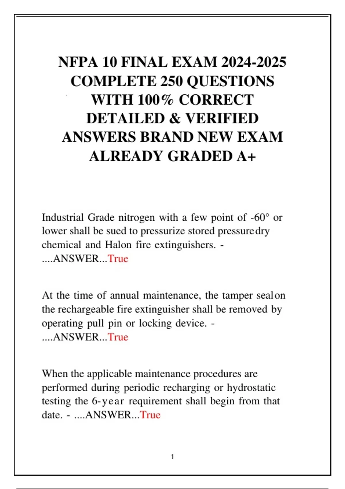 NFPA 10 FINAL EXAM COMPLETE 250 QUESTIONS WITH 100% CORRECT DETAILED & VERIFIED ANSWERS BRAND NEW EXAM ALREADY GRADED A+
