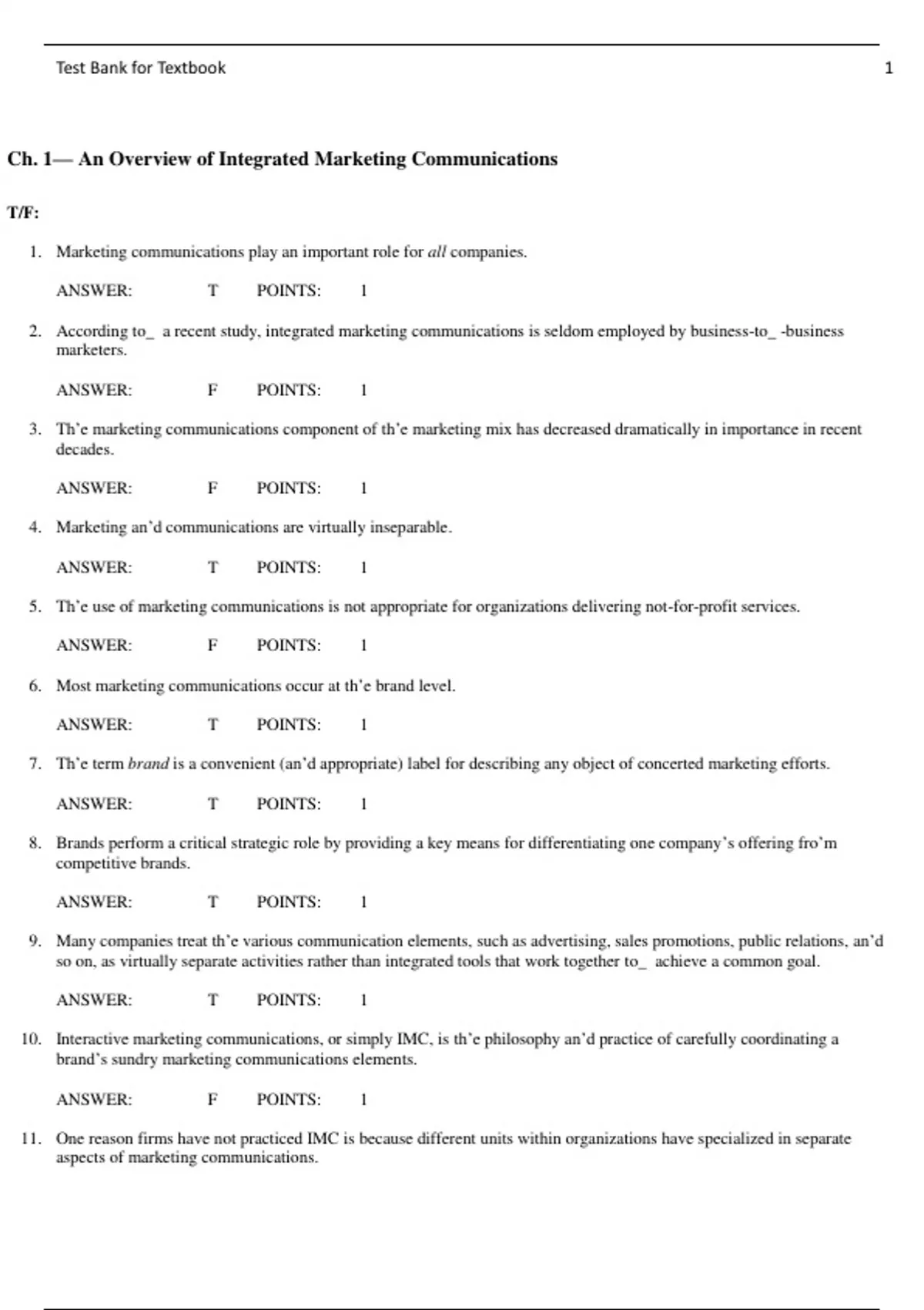 Test Bank Questions: Advertising Promotion and Other Aspects Shimp,
