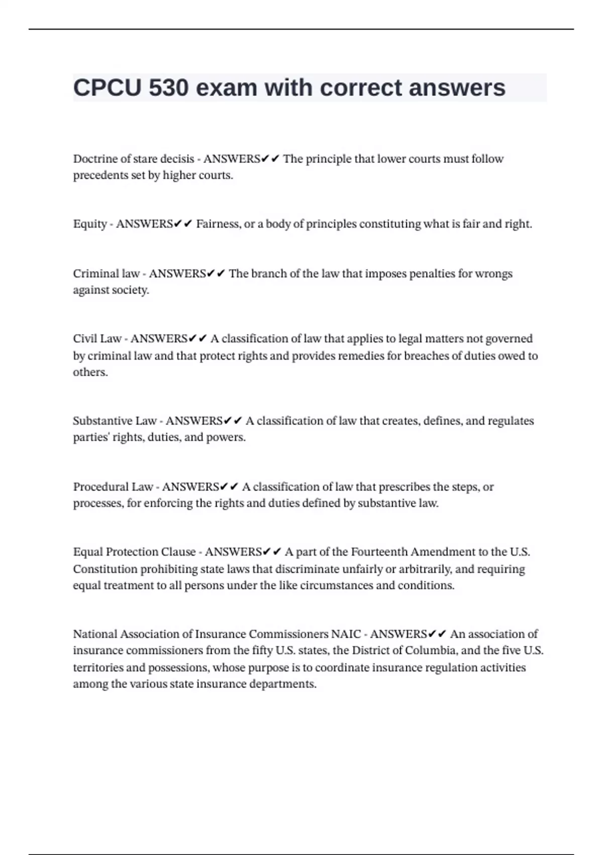 Doctrine |of |stare |decisis |- |ANSWERS✔✔ |The |principle |that |lower |courts |must |follow |