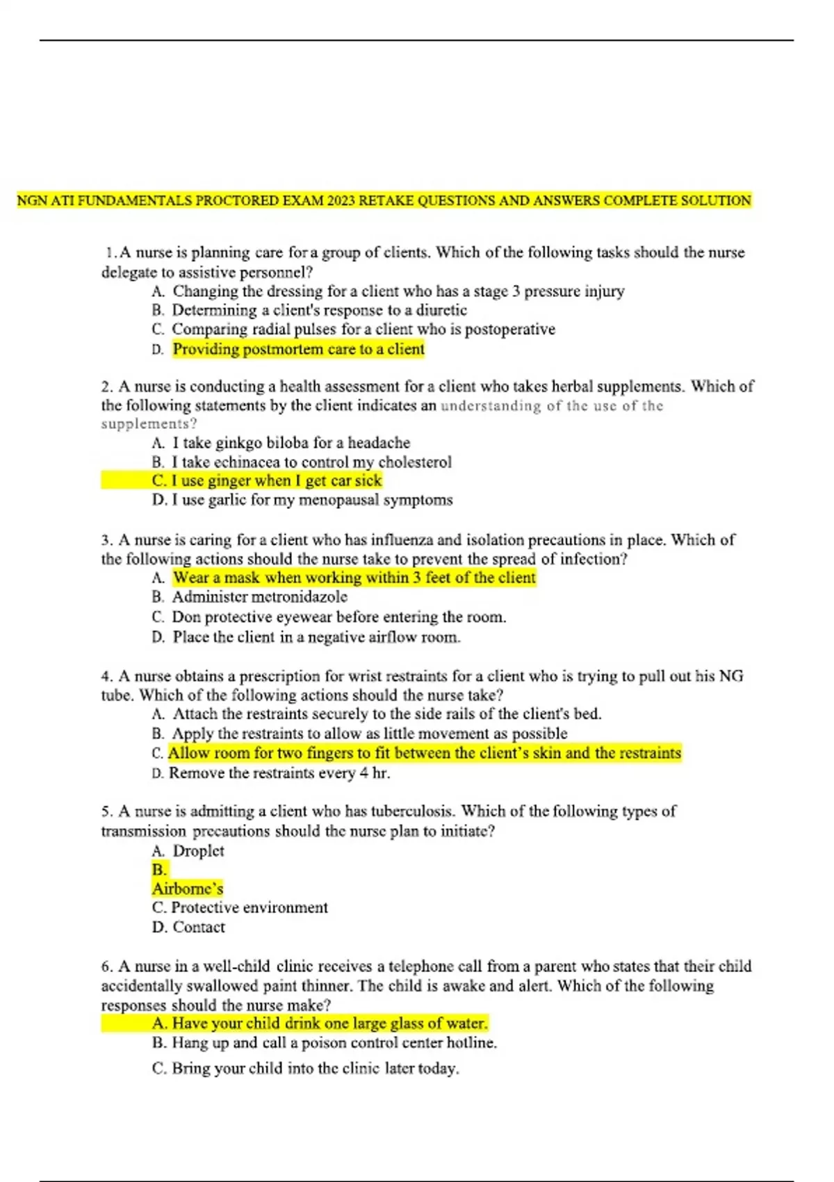NGN ATI FUNDAMENTALS PROCTORED EXAM 2023 RETAKE ;Questions (All correct answers, Already graded A+) Exam 2024/2025