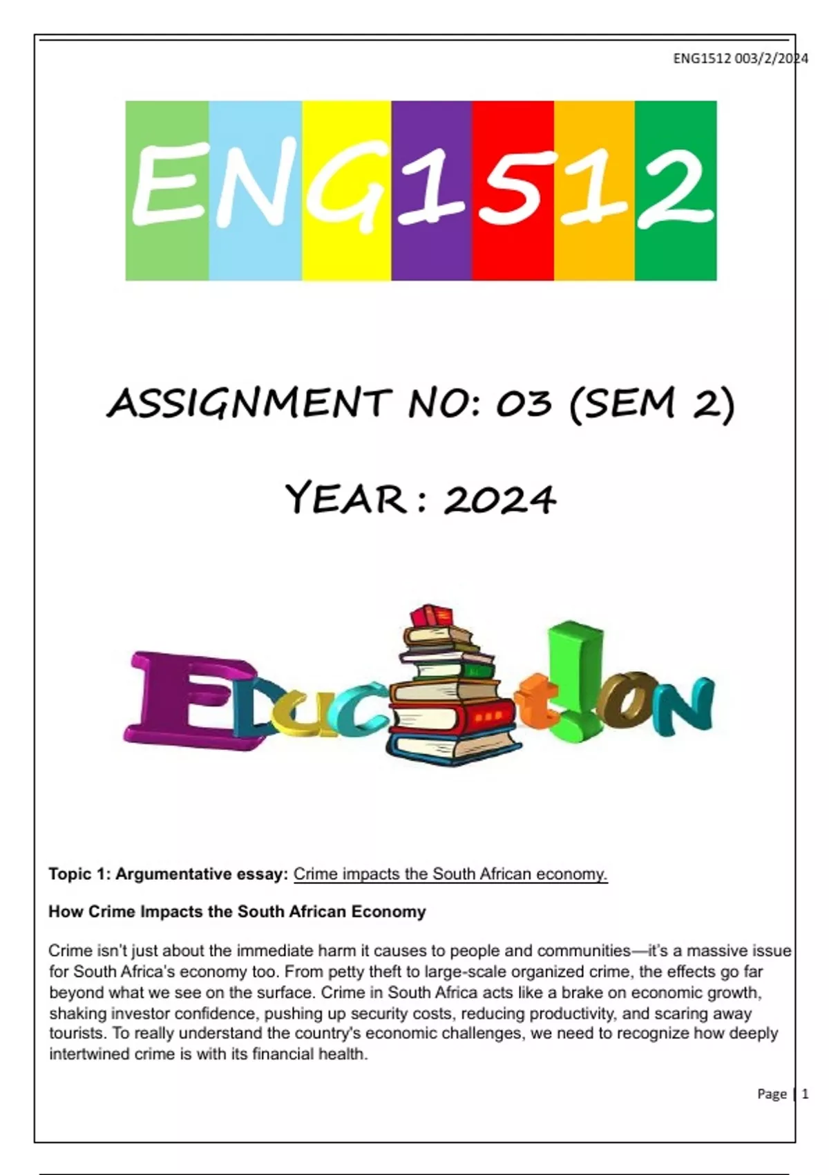 Topic 1: Argumentative essay: Crime impacts the South African economy.
