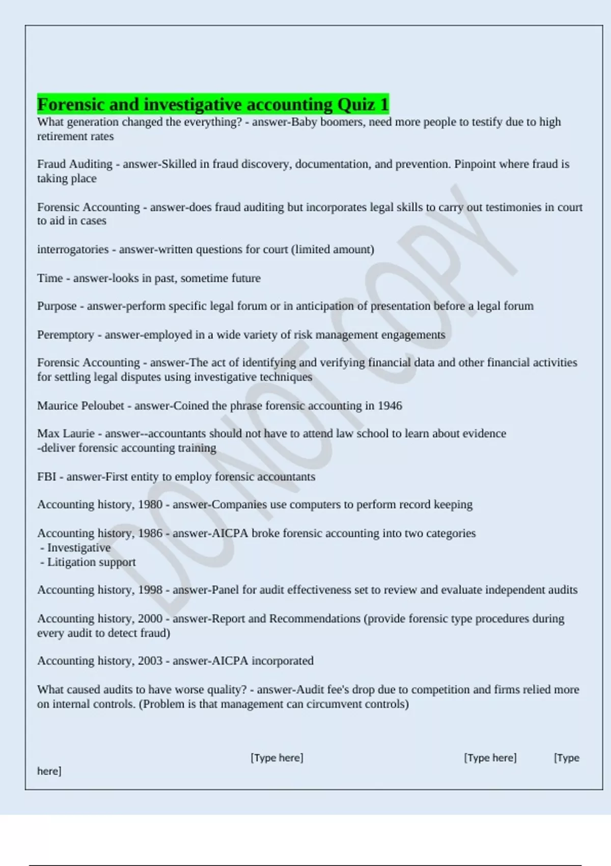 Forensic and investigative accounting Quiz 1
