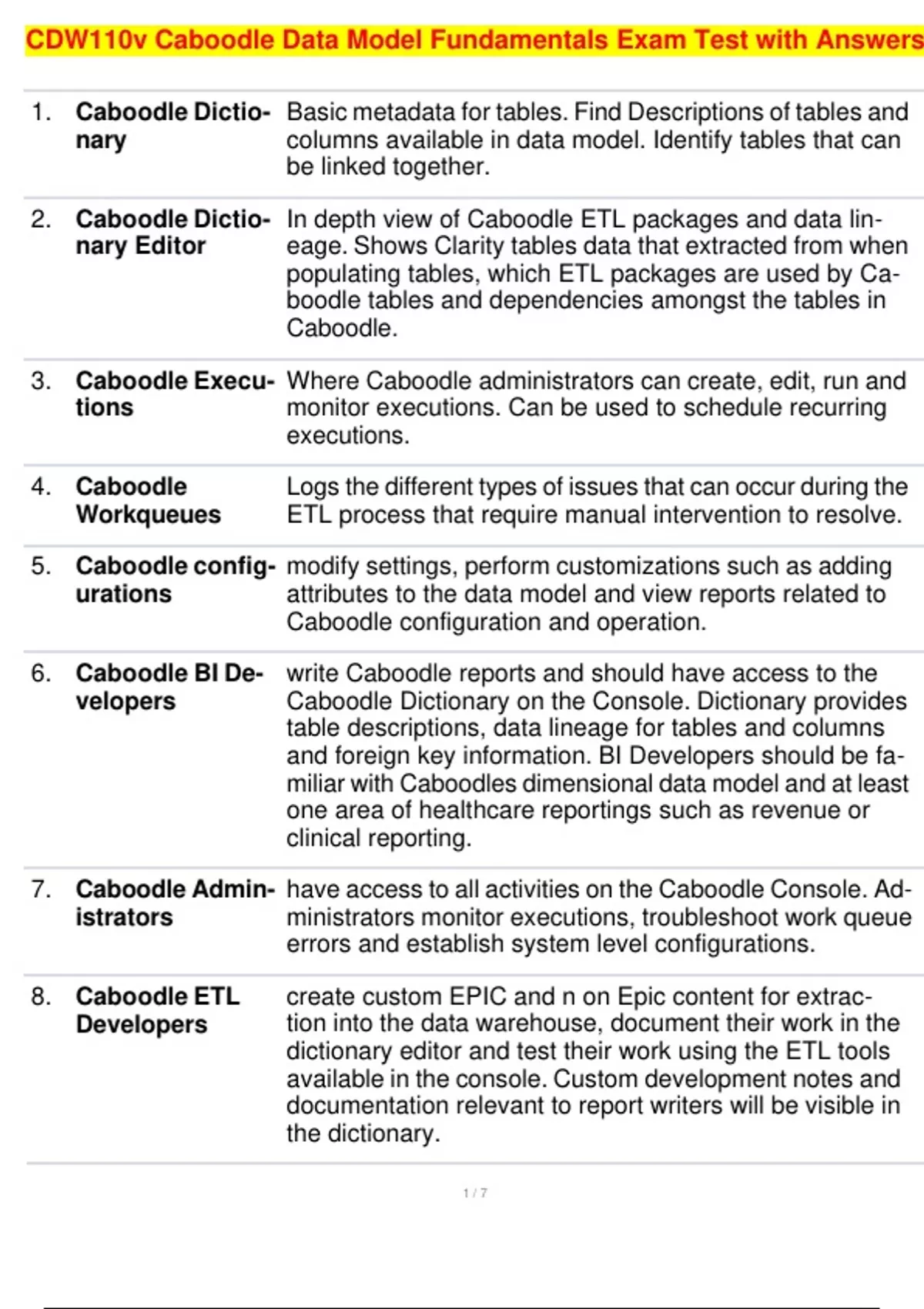 , CDW110v Caboodle Data Model Fundamentals Exam Test with Answers