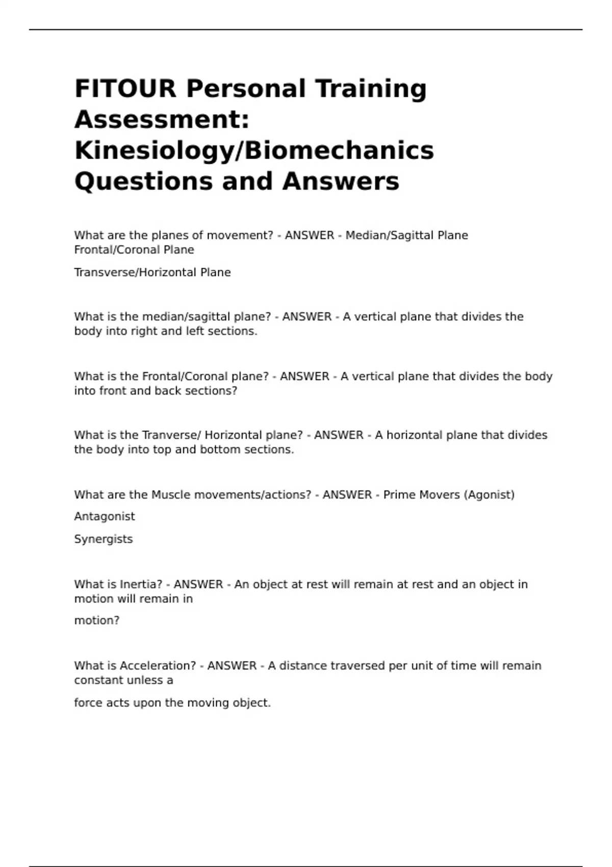 What are the planes of movement? - ANSWER - Median/Sagittal Plane
