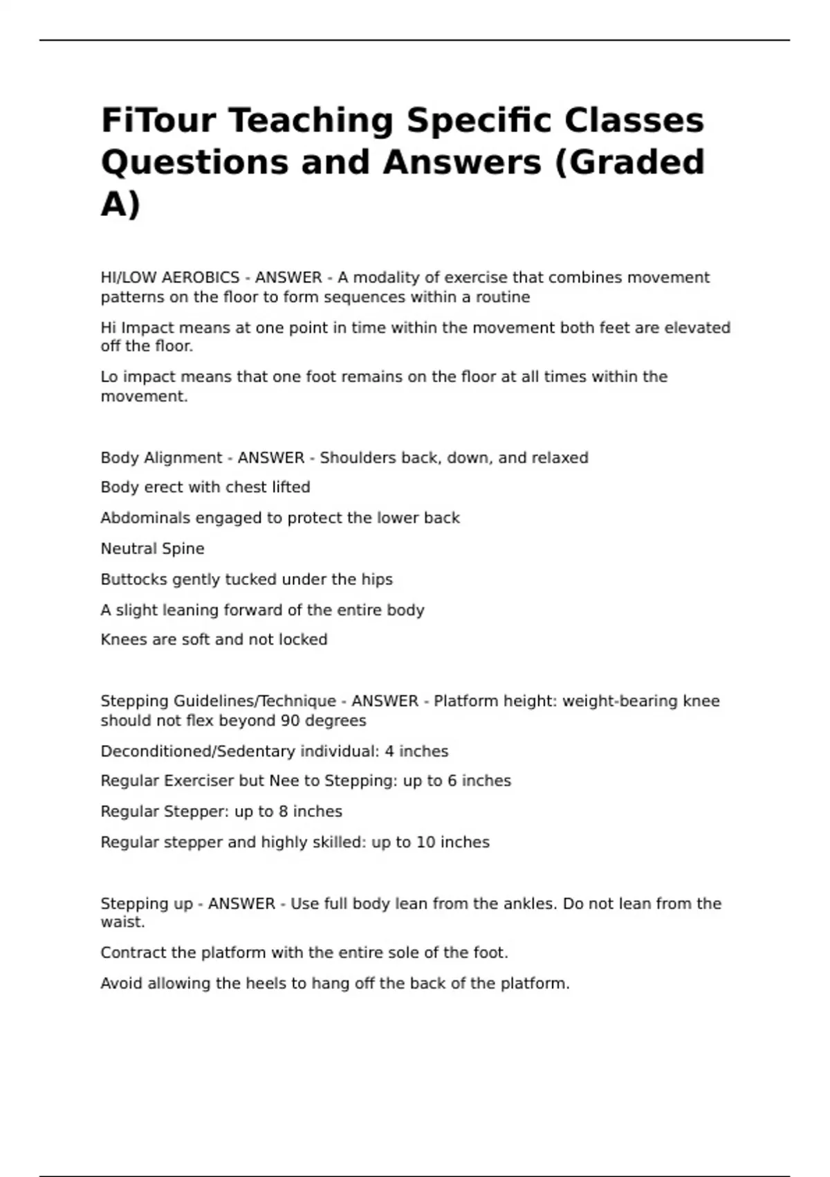 Stepping Guidelines/Technique - ANSWER - Platform height: weight-bearing knee