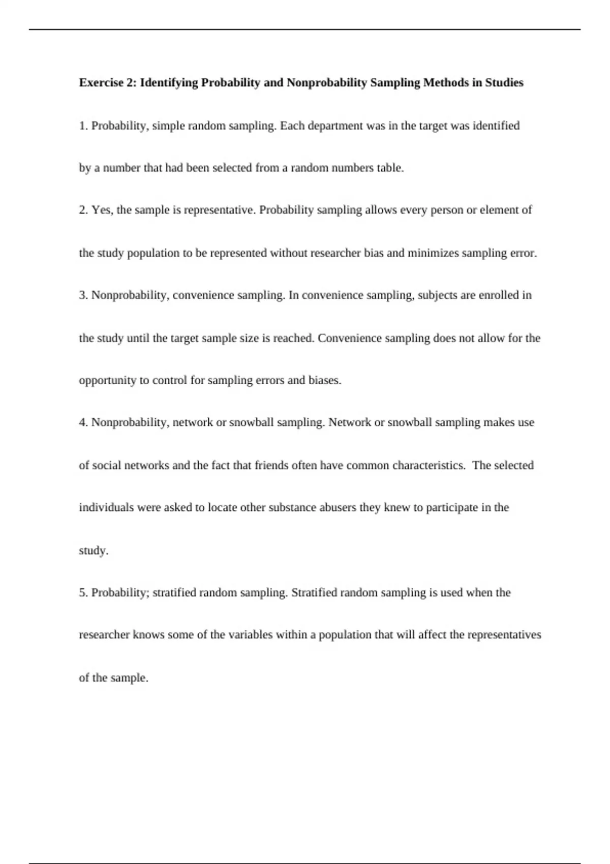 Exercise 2 Identifying Probability and Nonprobability Sampling Methods in Studies