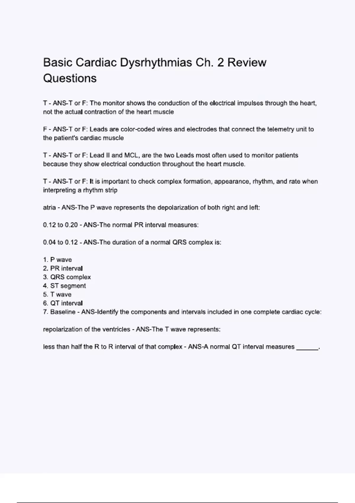 Basic Cardiac Dysrhythmias Ch. 2 Review Questions