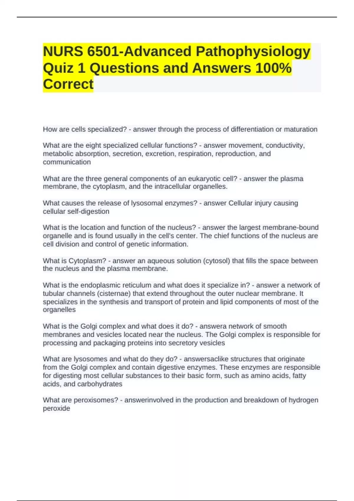 Quiz 1 Questions and Answers 100%
