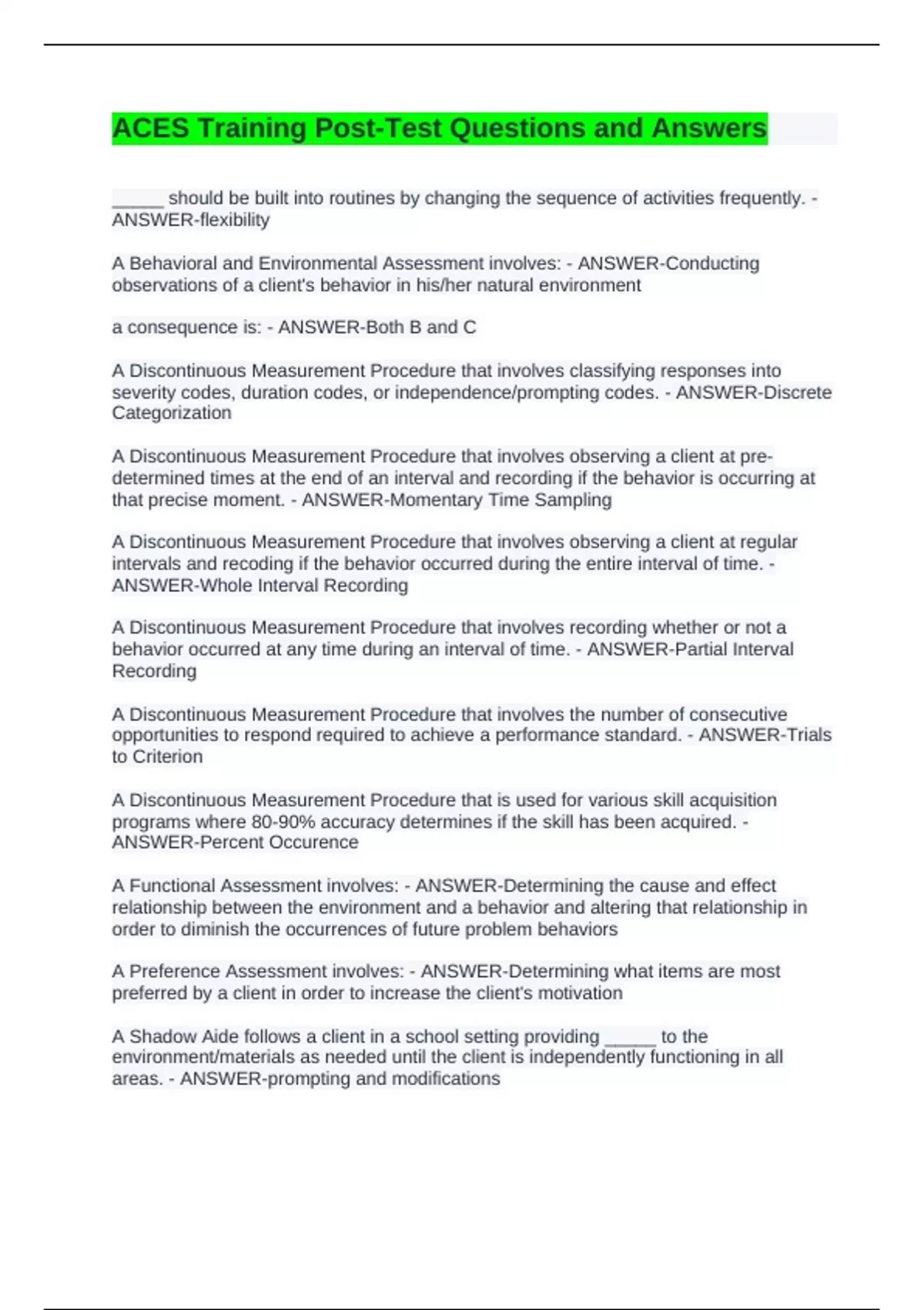 ACES Training Post-Test Questions and Answers
