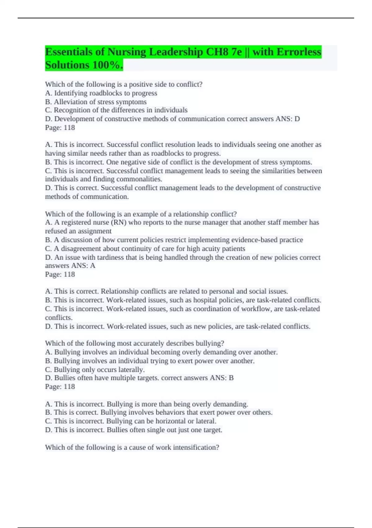 D. When a full-blown conflict occurs, problem-solving is necessary. correct answers ANS: A
