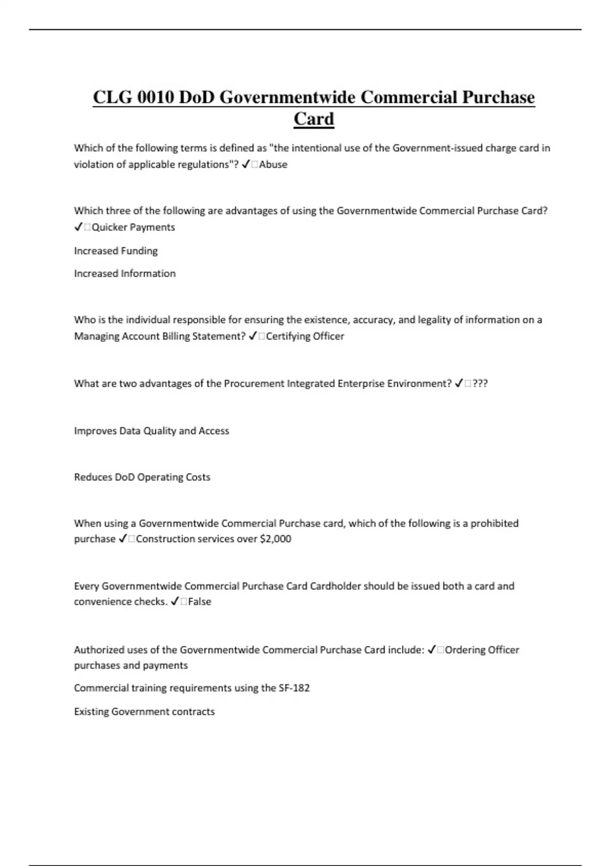 Authorized uses of the Governmentwide Commercial Purchase Card include: ✔️Ordering Officer