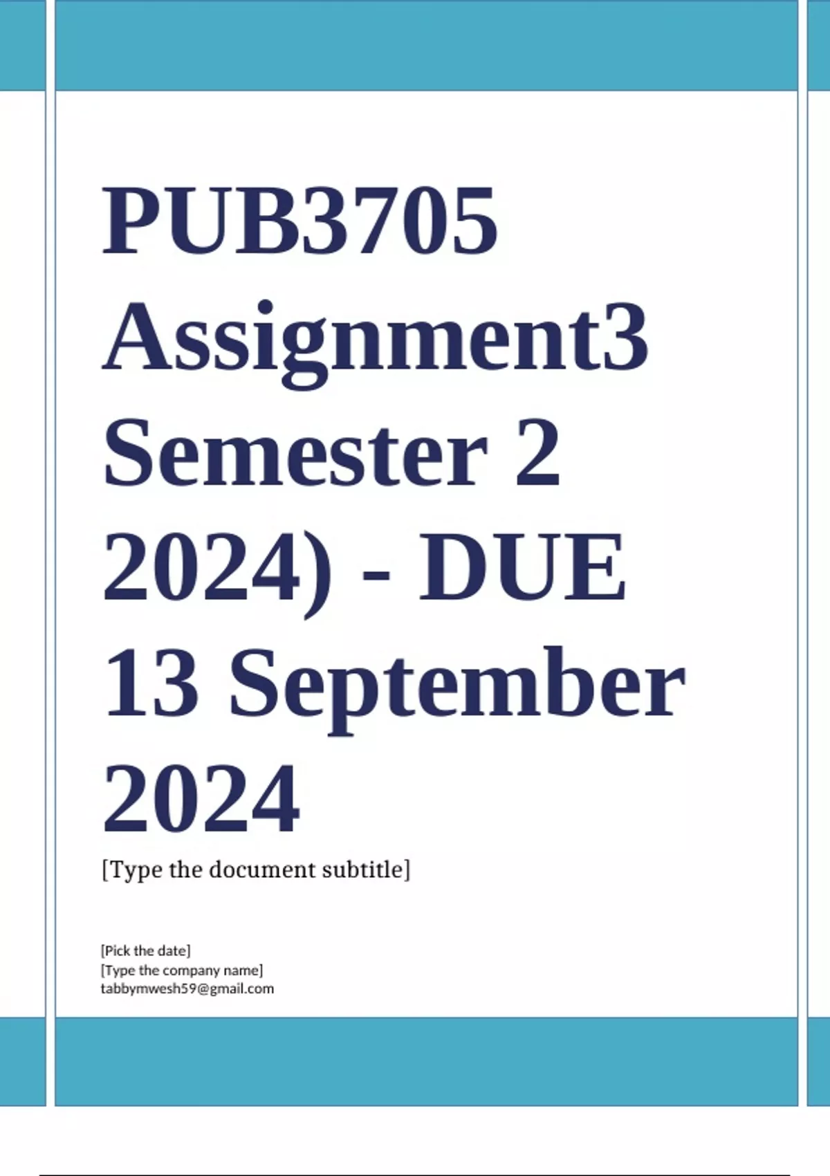 PUB3705 Assignment 3 (COMPLETE ANSWERS) Semester 2 2024 (526898) - DUE 13 September 2024 ; 100% TRUSTED Complete, trusted solutions and explanations. Ensure your success with us..
