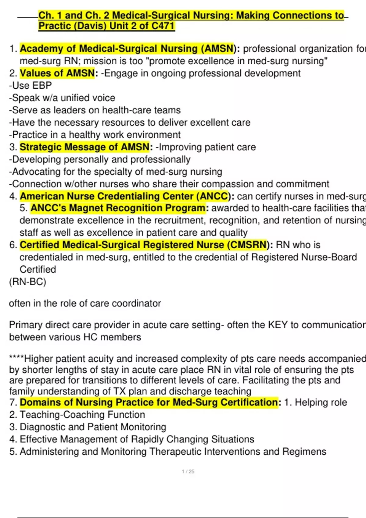 1. Academy of Medical-Surgical Nursing (AMSN): professional organization for