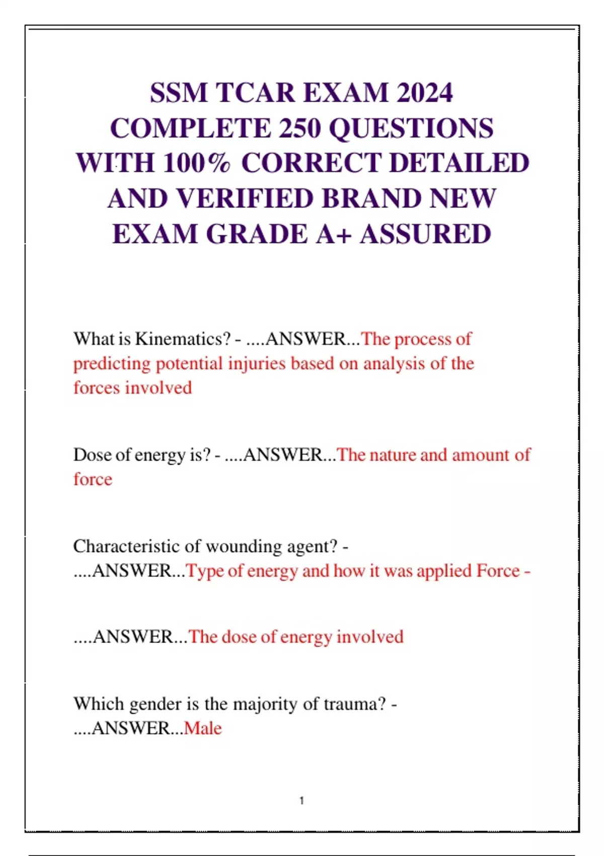 SSM TCAR EXAM 2024 COMPLETE 250 QUESTIONS WITH 100% CORRECT DETAILED AND VERIFIED BRAND NEW EXAM GRADE A+ ASSURED