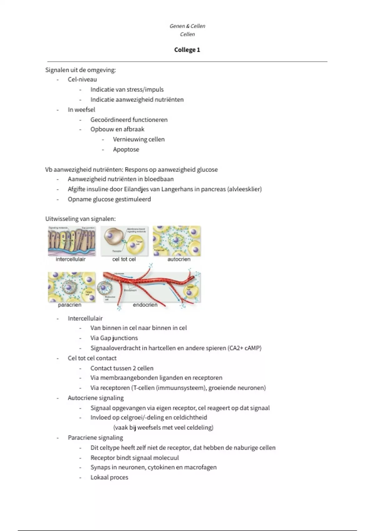 Hoorcollege aantekeningen deeltoets 1 Cellen van het vak Genen en Cellen (Gezondheidswetenschappen jaar 1)