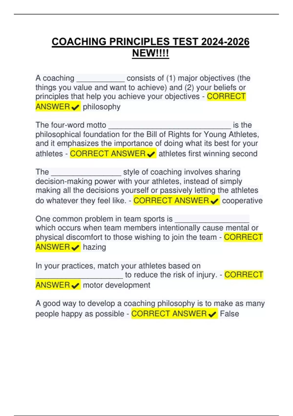 COACHING PRINCIPLES TEST 2024-2026
