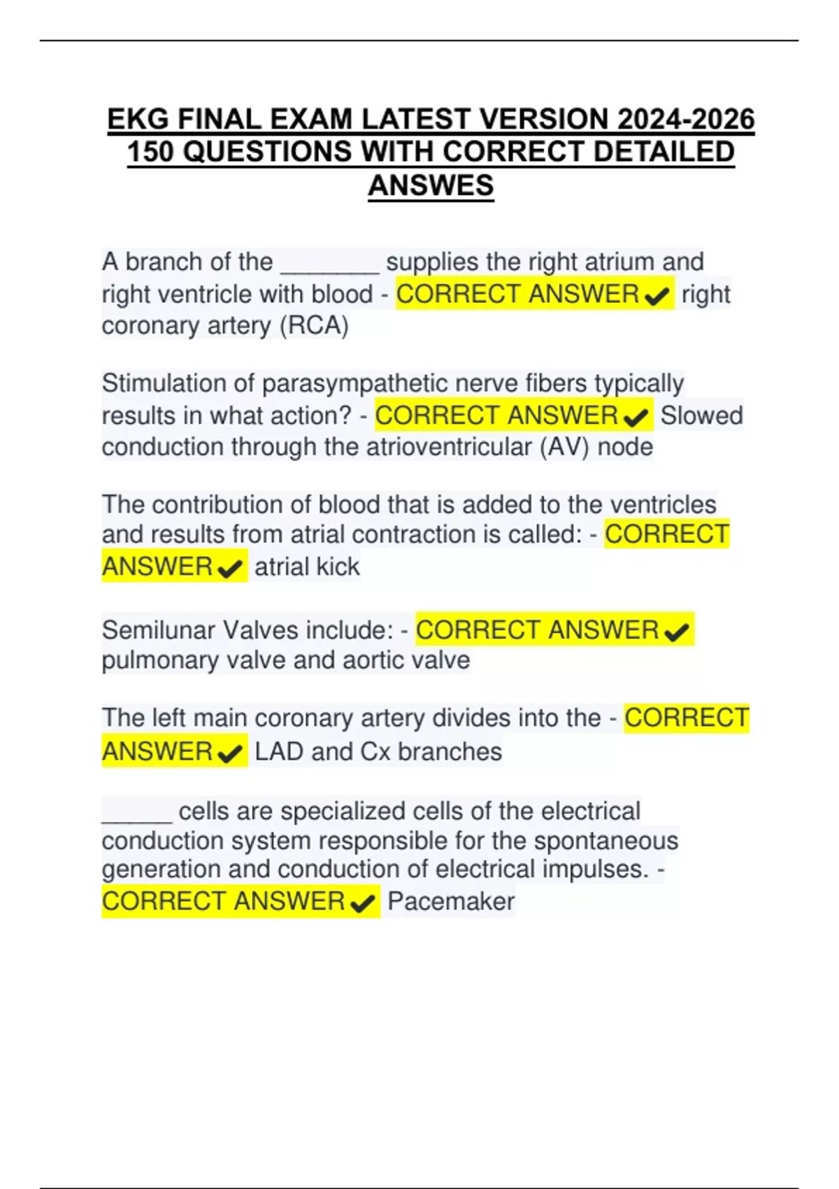 EKG FINAL EXAM LATEST VERSION QUESTIONS WITH CORRECT DETAILED ANSWERS