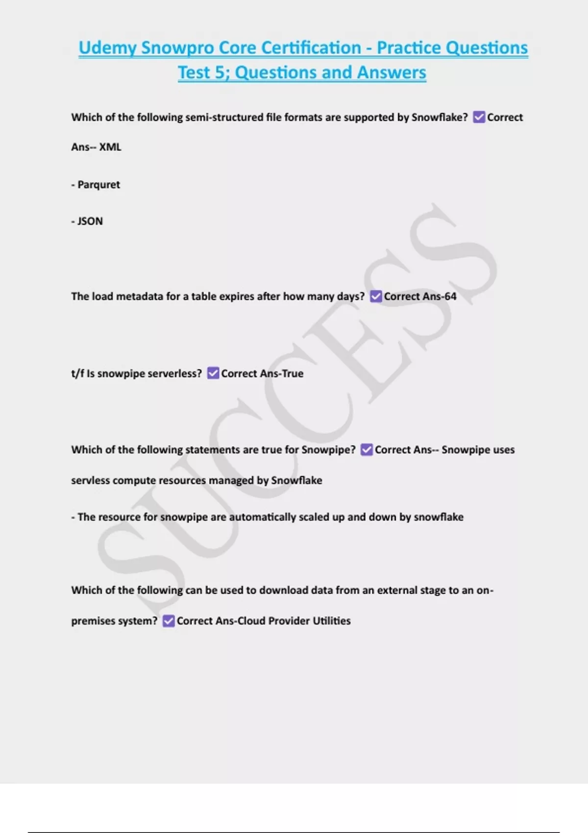 Udemy Snowpro Core Certification - Practice Questions Test 5; Questions and Answers