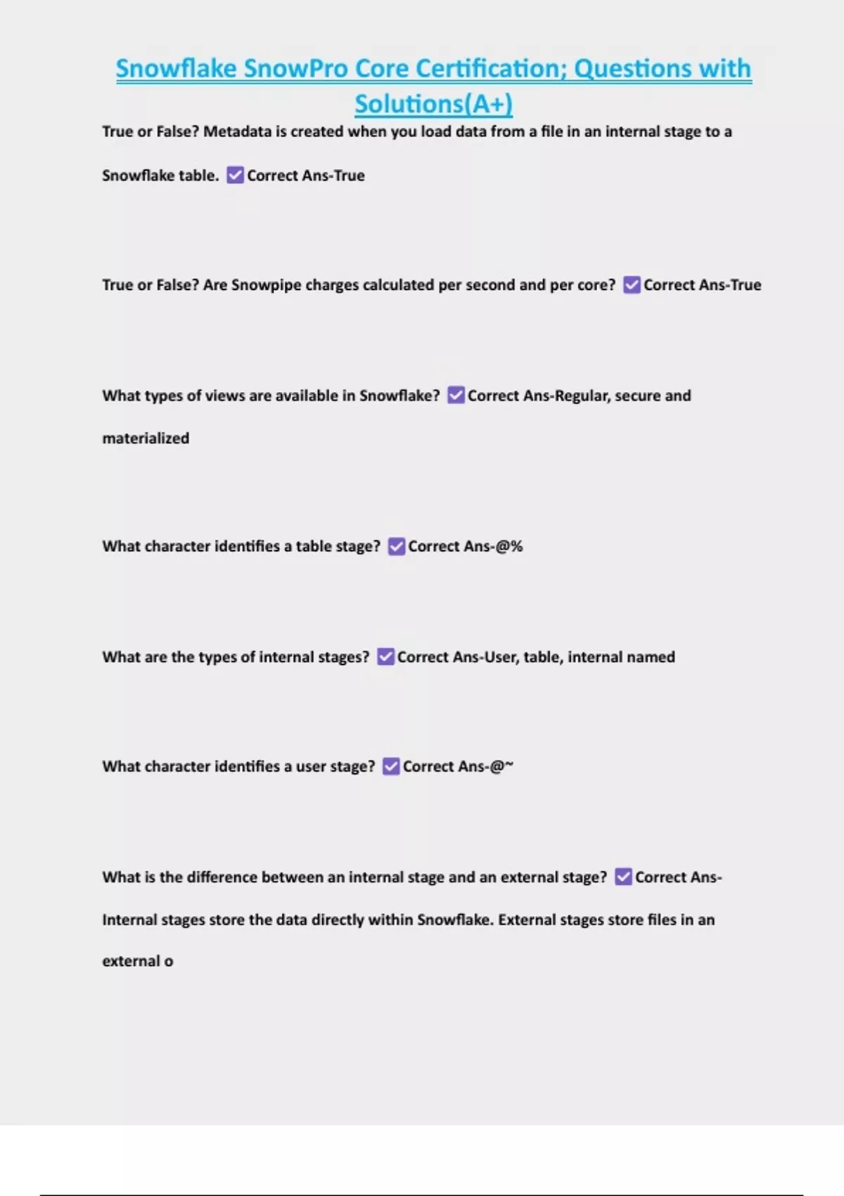 Snowflake SnowPro Core Certification; Questions with Solutions(A+)