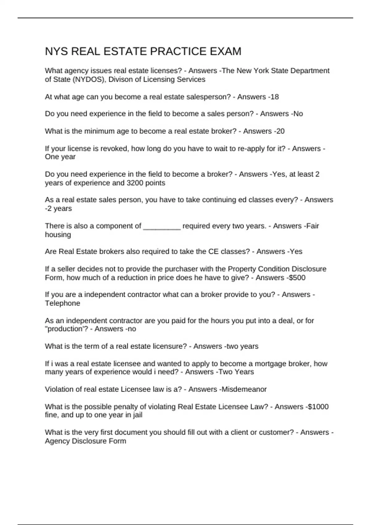 NYS REAL ESTATE PRACTICE EXAM