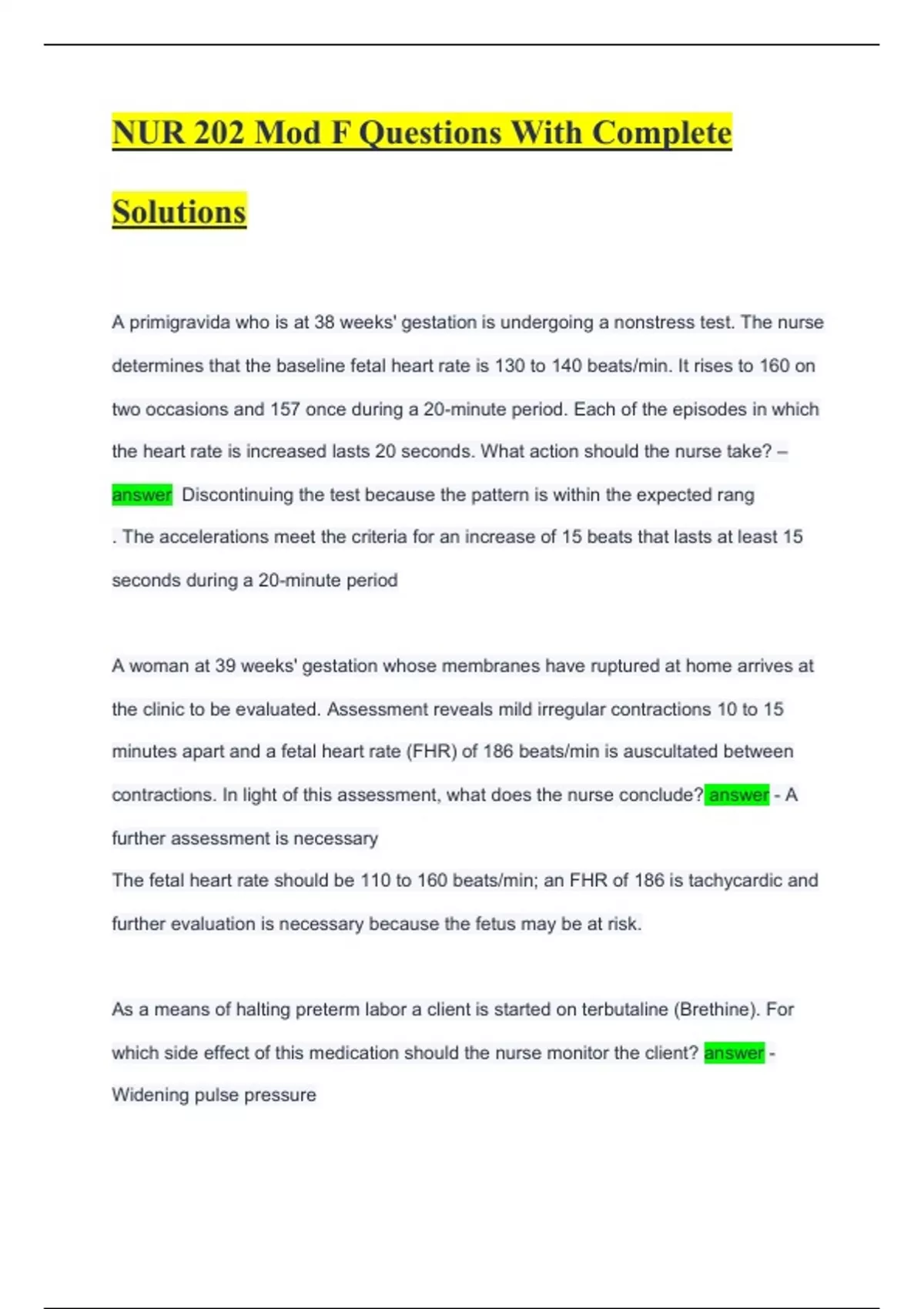 beats/min. What is the priority nursing action? answer - Assessing maternal vital signs
