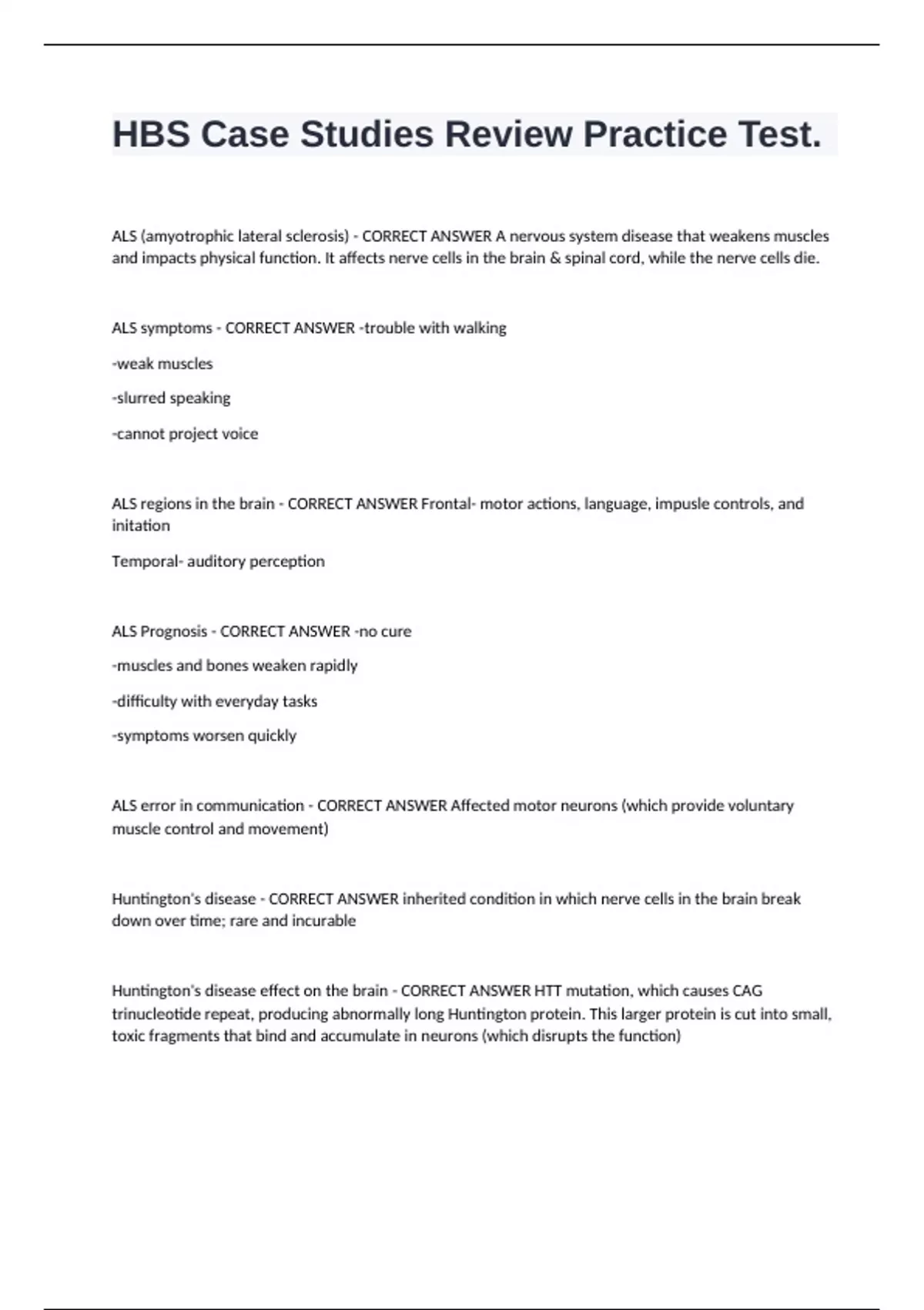 ALS (amyotrophic lateral sclerosis) - CORRECT ANSWER A nervous system disease that weakens muscles