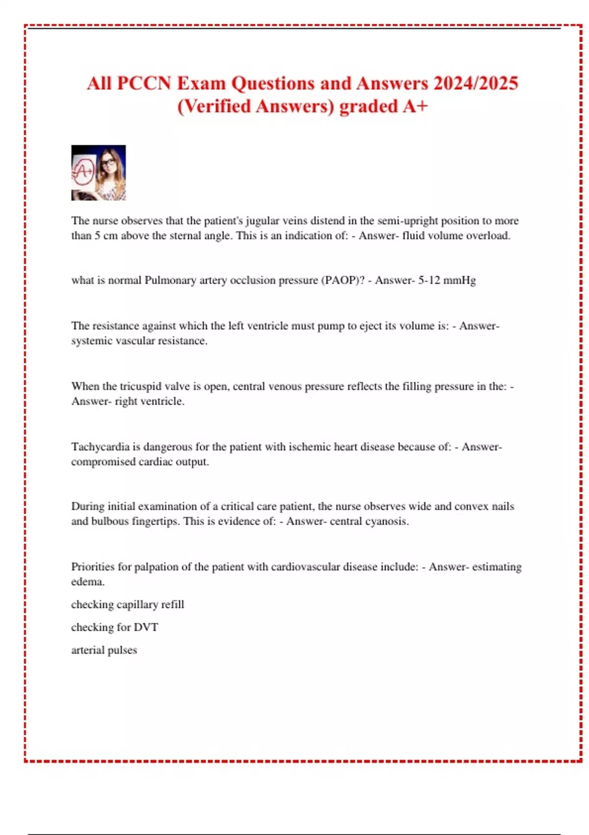 All PCCN Exam Questions and Answers 2024/2025 (Verified Answers) graded A+
