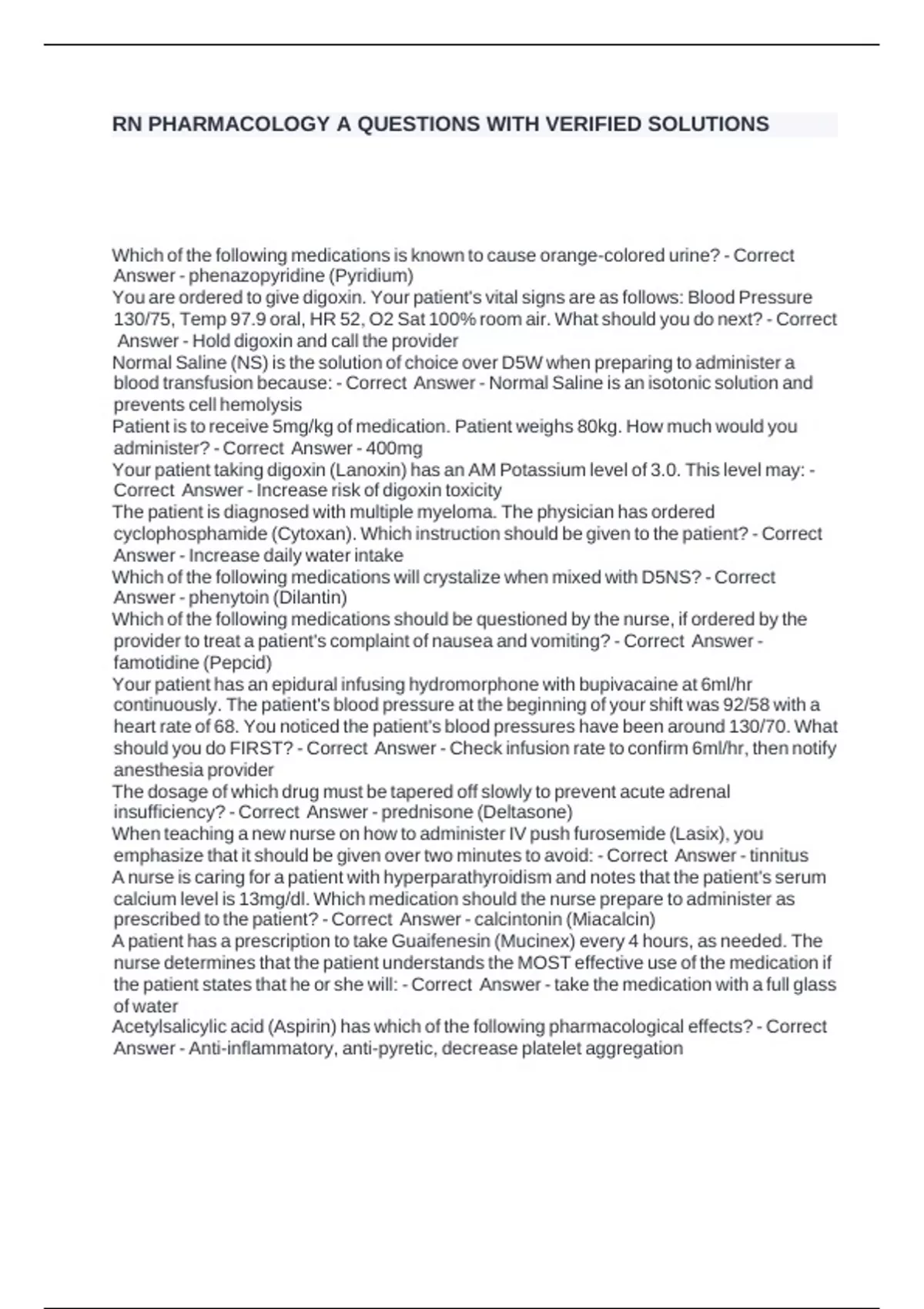 RN Pharmacology A QUESTIONS WITH VERIFIED SOLUTIONS.RN Pharmacology A QUESTIONS WITH VERIFIED SOLUTIONS.RN Pharmacology A QUESTIONS WITH VERIFIED SOLUTIONS.RN Pharmacology A QUESTIONS WITH VERIFIED SOLUTIONS.RN Pharmacology A QUESTIONS WITH VERIFIED SOLUTIONS.