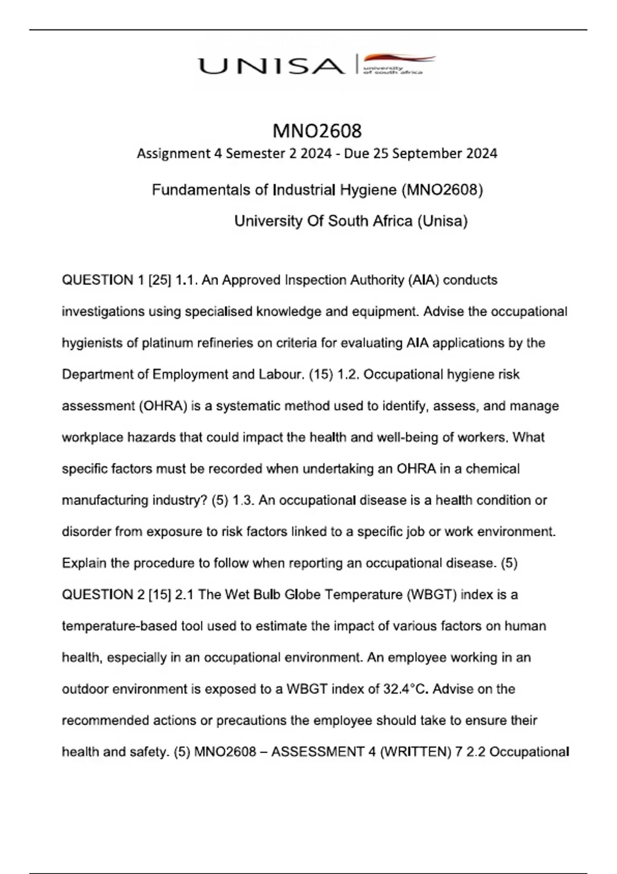 MNO2608 Assignment 4 (COMPLETE ANSWERS) Semester 2 2024 - DUE 25 September 2024