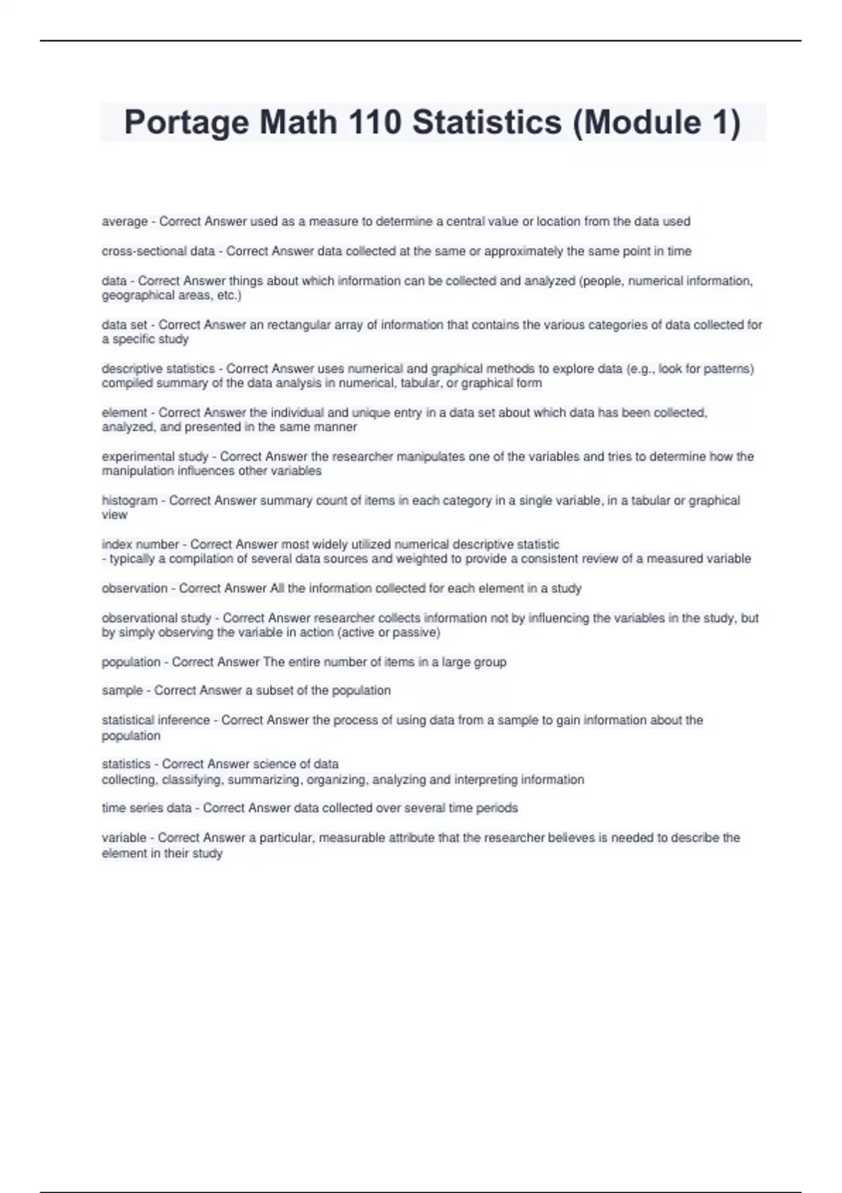 Portage Math 110 Statistics (Module 1)