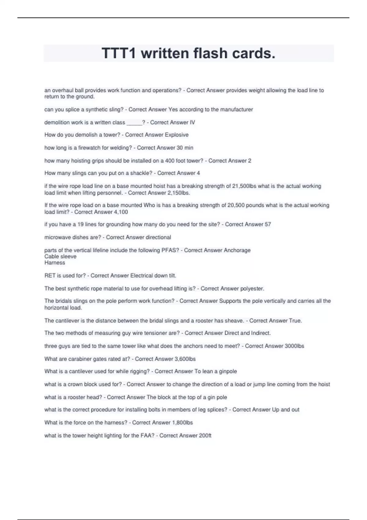 The bridals slings on the pole perform work function? - Correct Answer Supports the pole vertically and carries all the