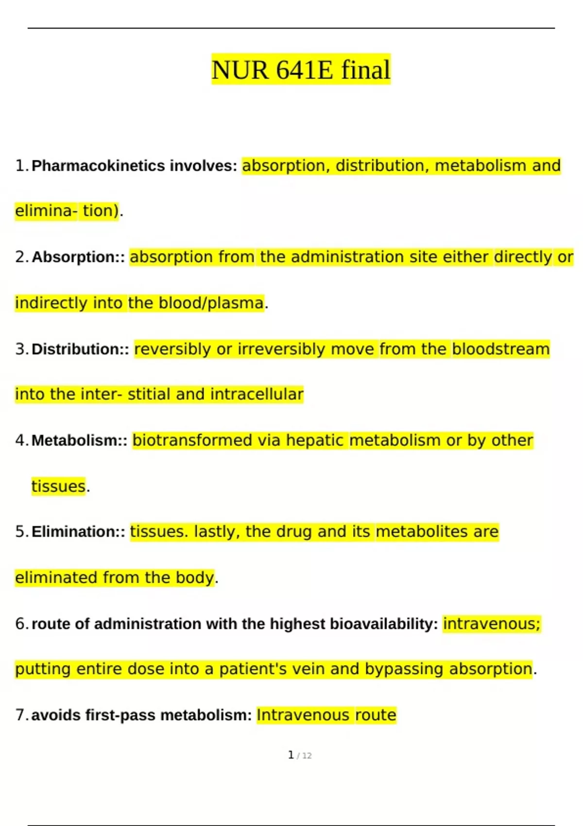 6. route of administration with the highest bioavailability: intravenous;