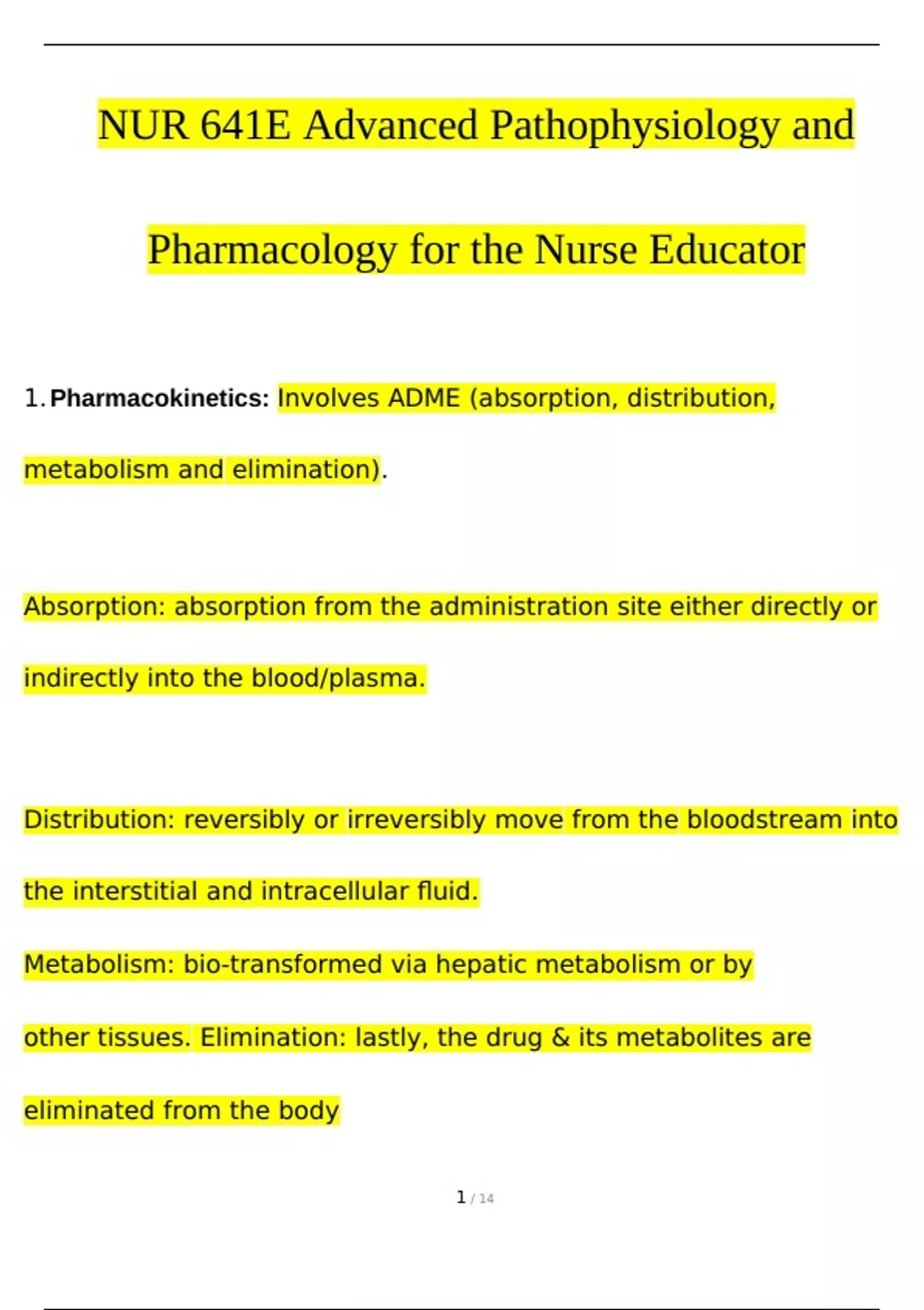 NUR 641E Advanced Pathophysiology and Pharmacology for the Nurse Educator Questions And Answers Latest 2024/ 2025 Graded A+ | 100% Verified!!