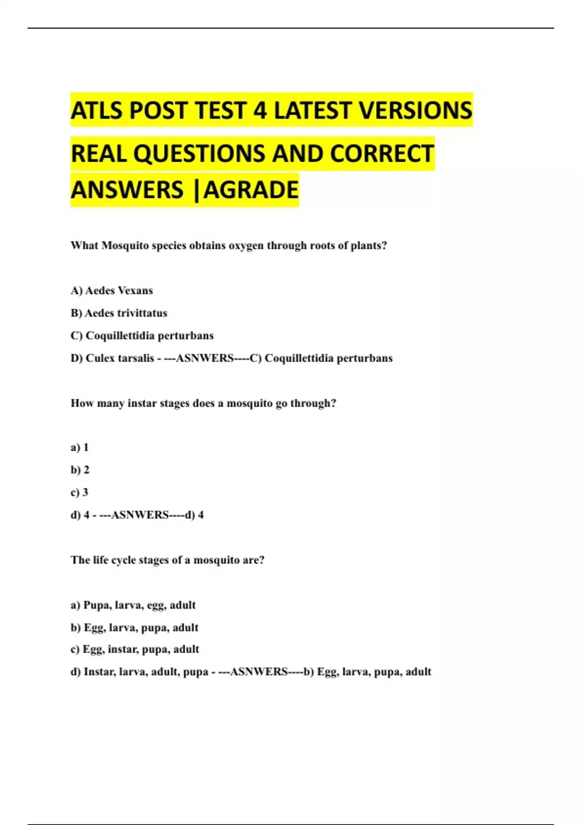ATLS POST TEST 4 LATEST VERSIONS