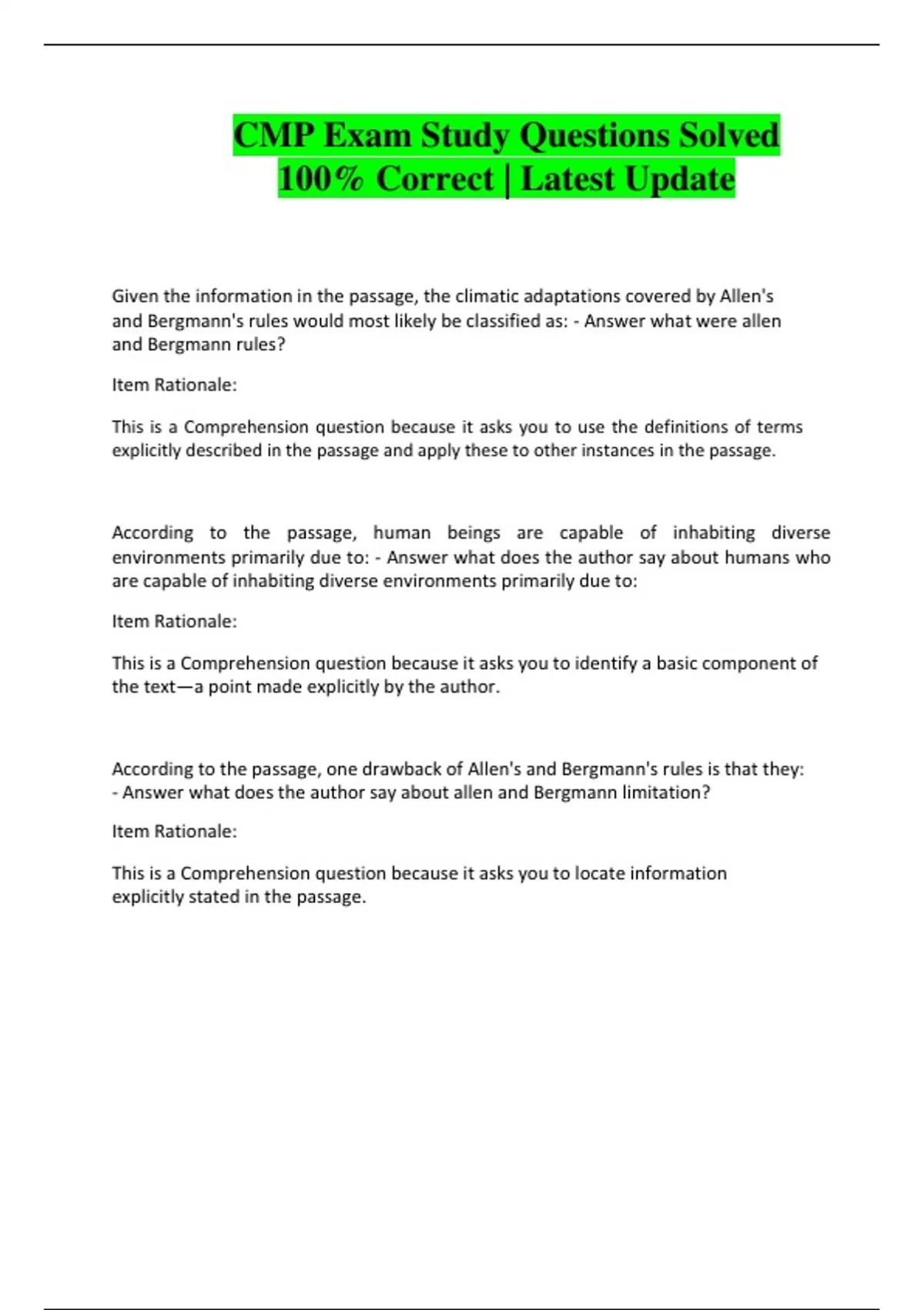 CMP Exam Study Questions Solved