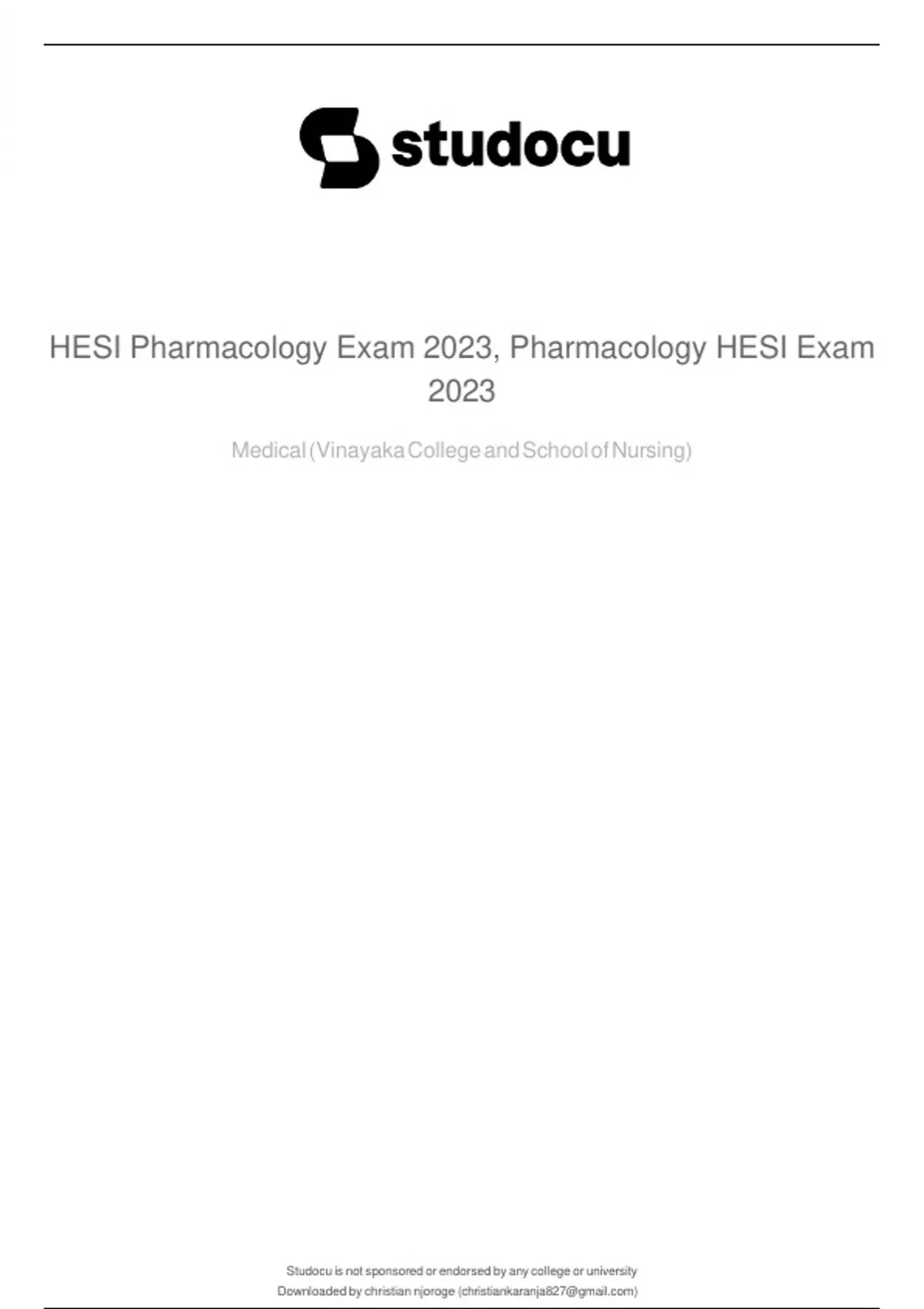 HESI Pharmacology Exam 2023, Pharmacology HESI Exam