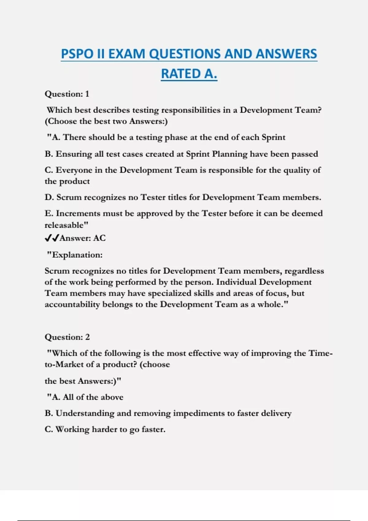 PSPO II EXAM QUESTIONS AND ANSWERS RATED A.