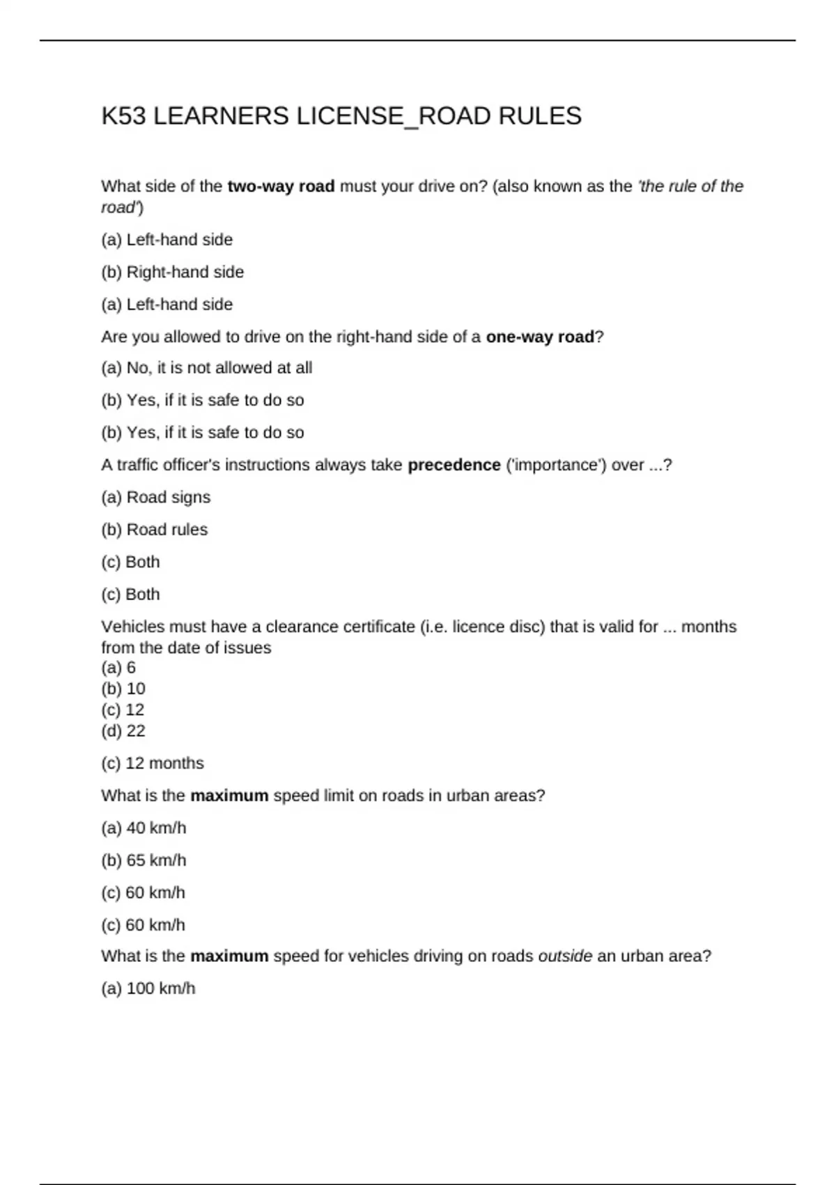 What side of the two-way road must your drive on? (also known as the 'the rule of the