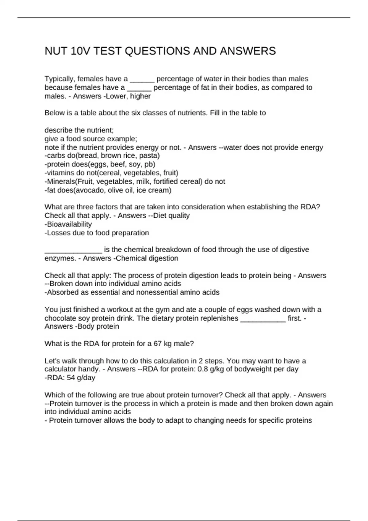 NUT 10V TEST QUESTIONS AND ANSWERS