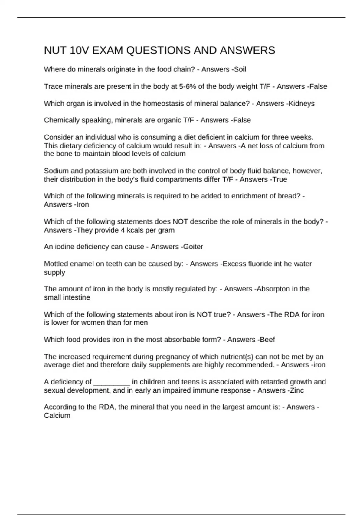 NUT 10V EXAM QUESTIONS AND ANSWERS