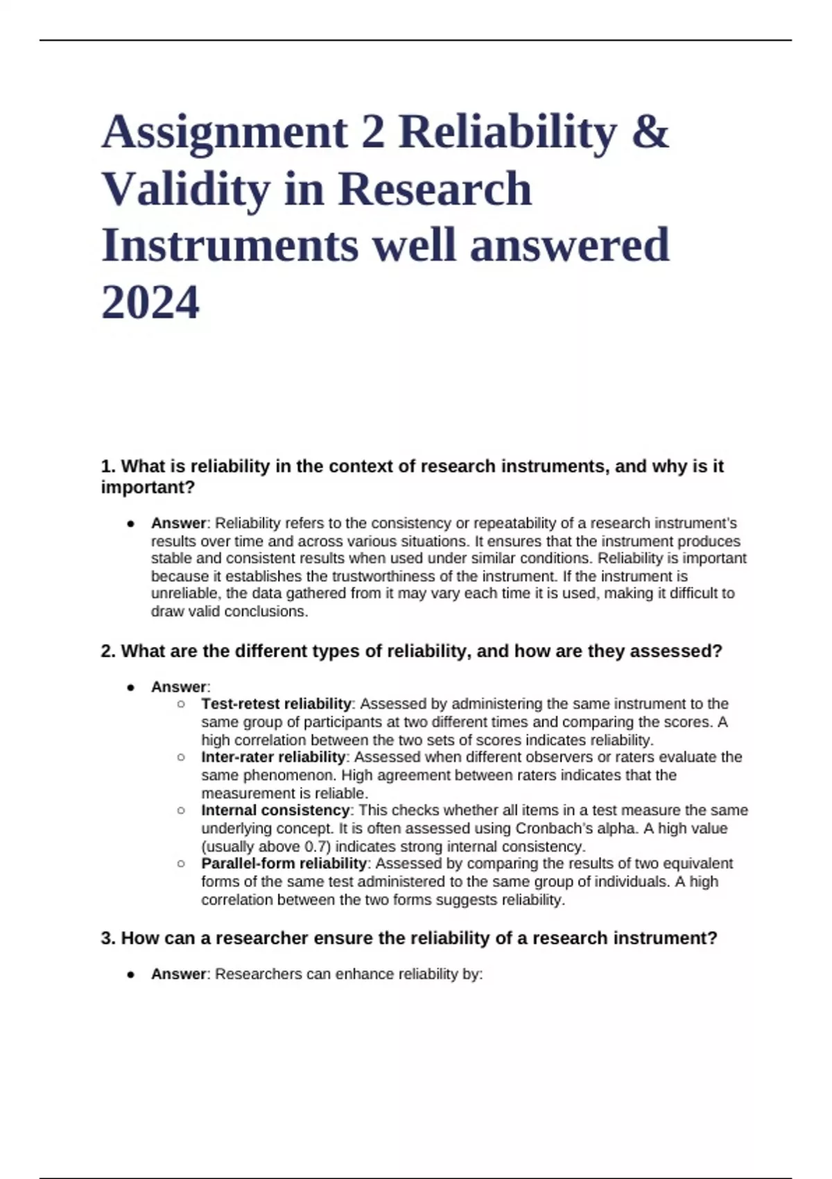 ● Answer: Reliability refers to the consistency or repeatability of a research instrument’s