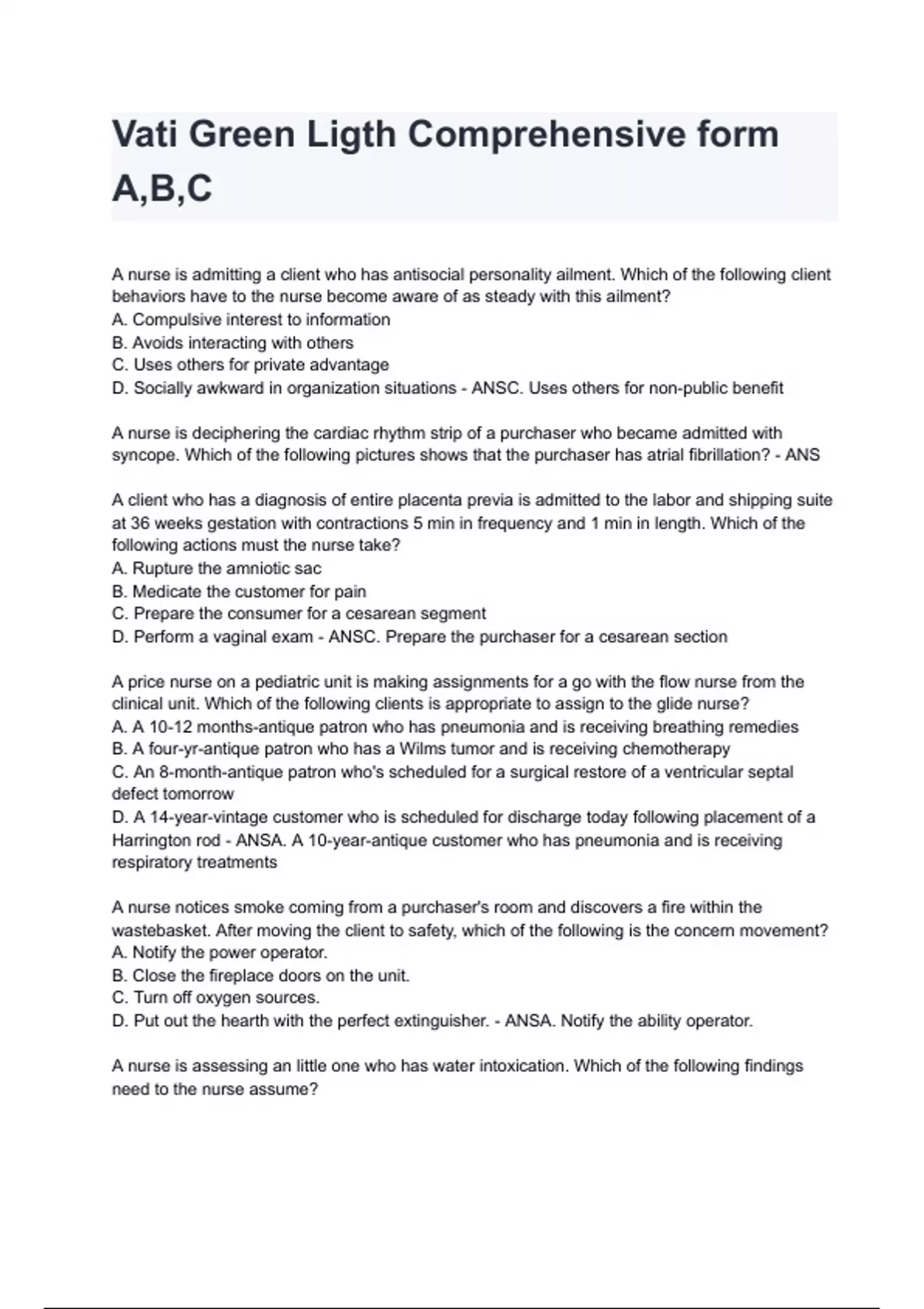 list of purchaser reviews. Which of the following client reviews ought to the nurse examine first?