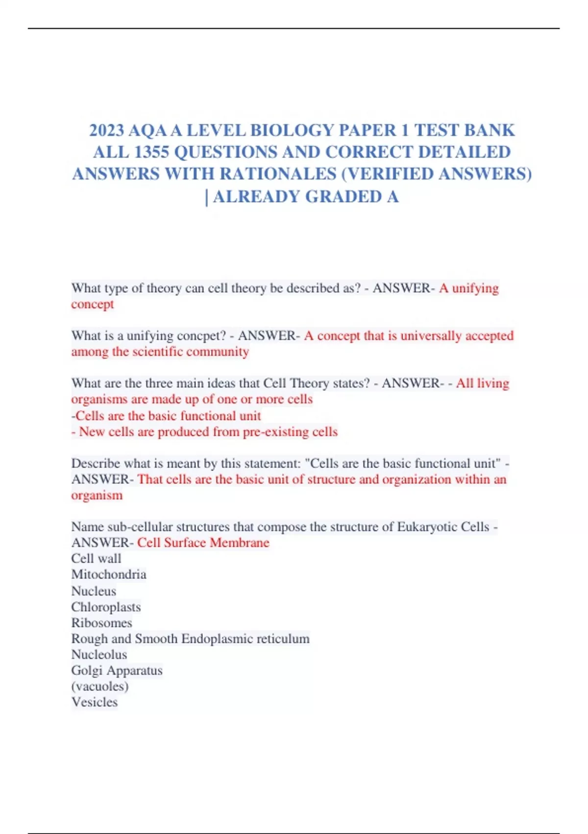 What type of theory can cell theory be described as? - ANSWER- A unifying