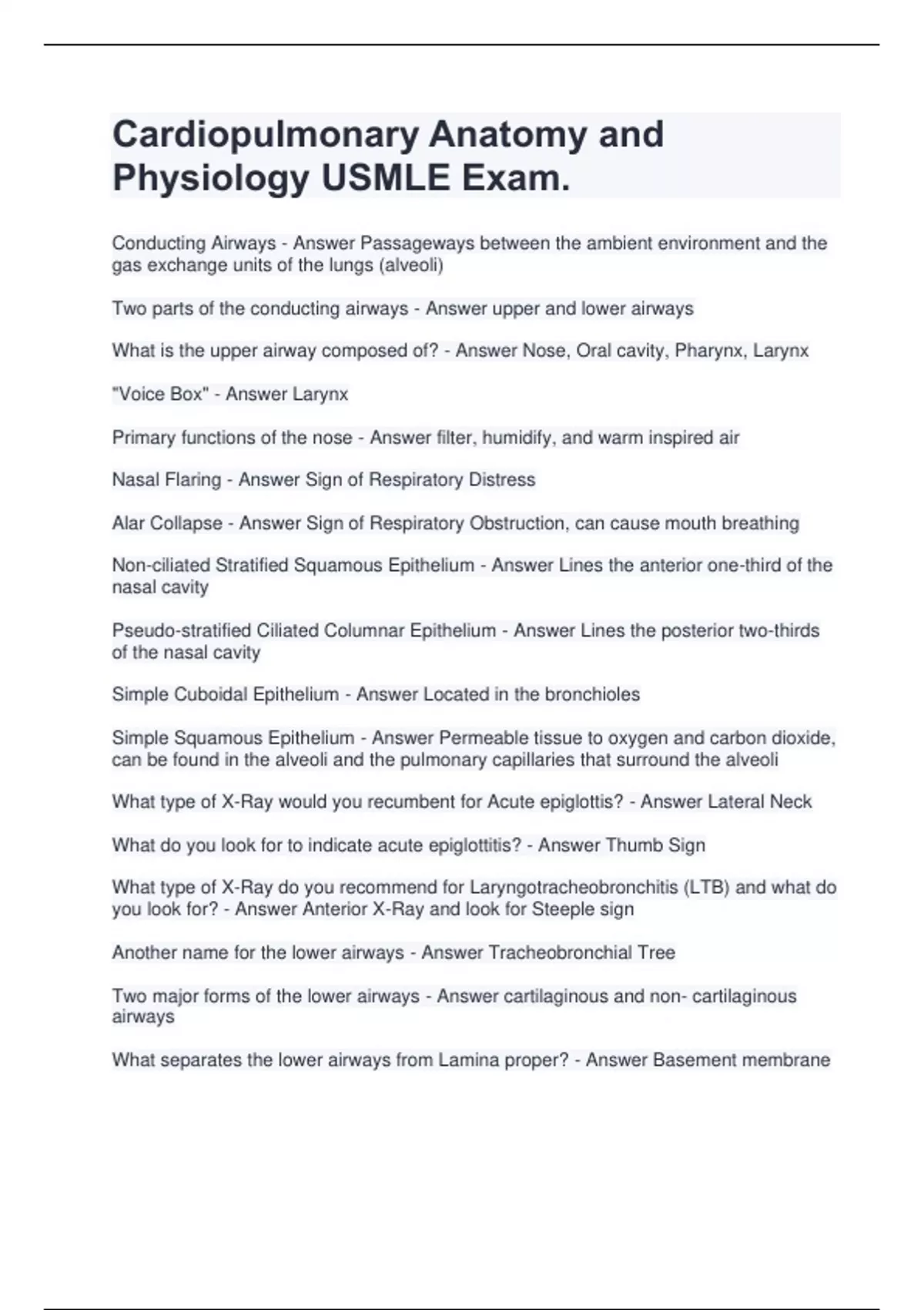 Cardiopulmonary Anatomy and Physiology USMLE Exam.