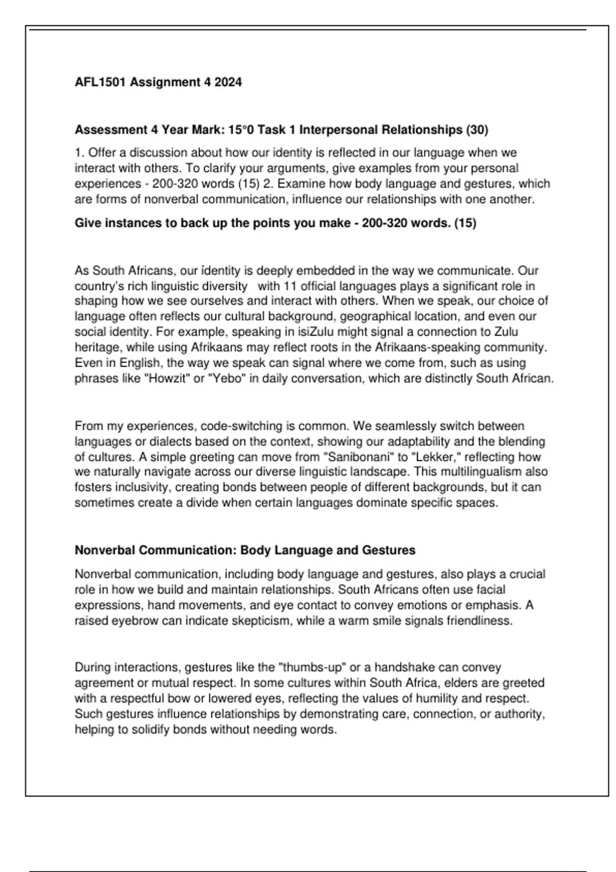 experiences - 200-320 words (15) 2. Examine how body language and gestures, which