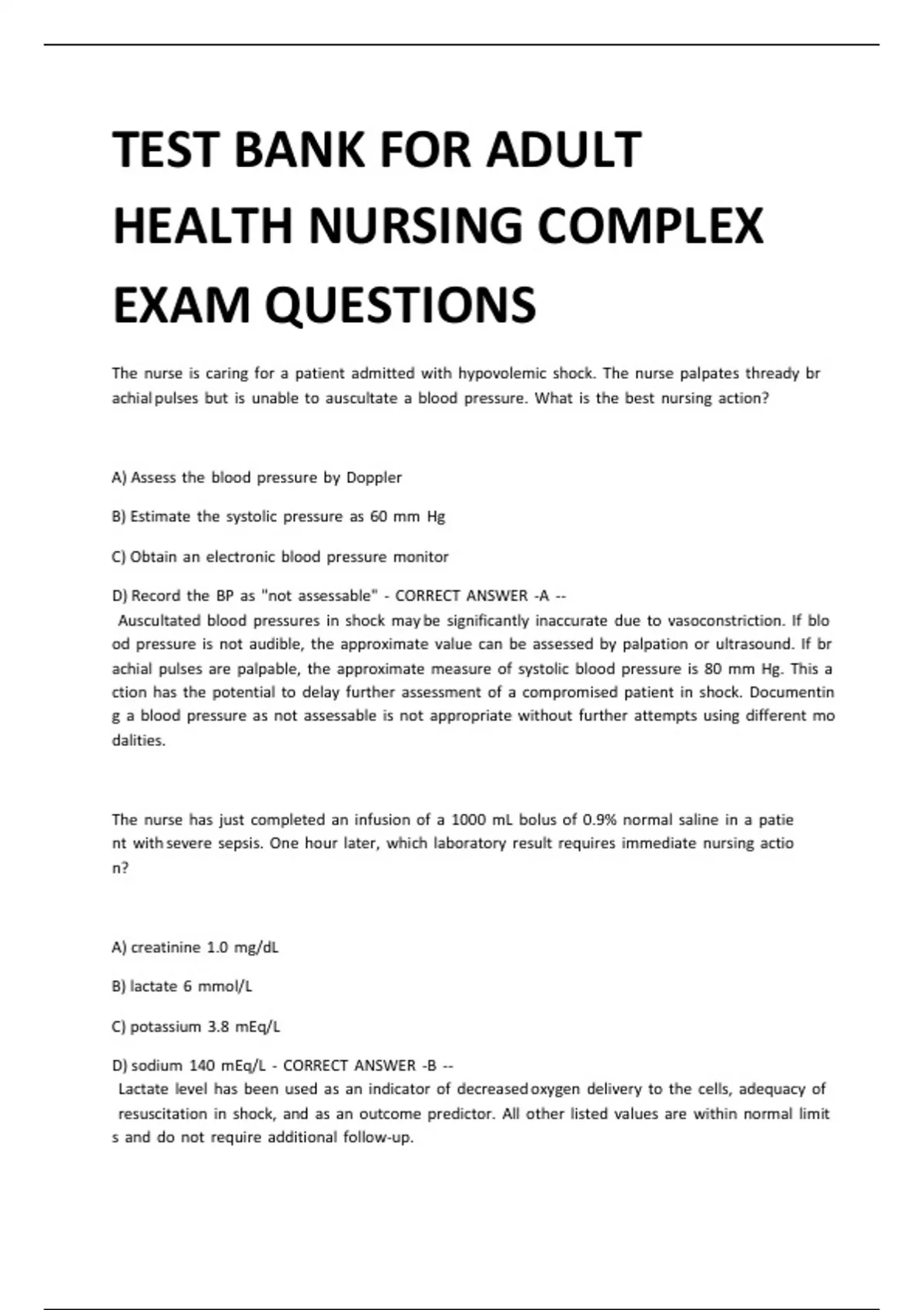 TEST BANK FOR ADULT HEALTH NURSING COMPLEX EXAM QUESTIONS