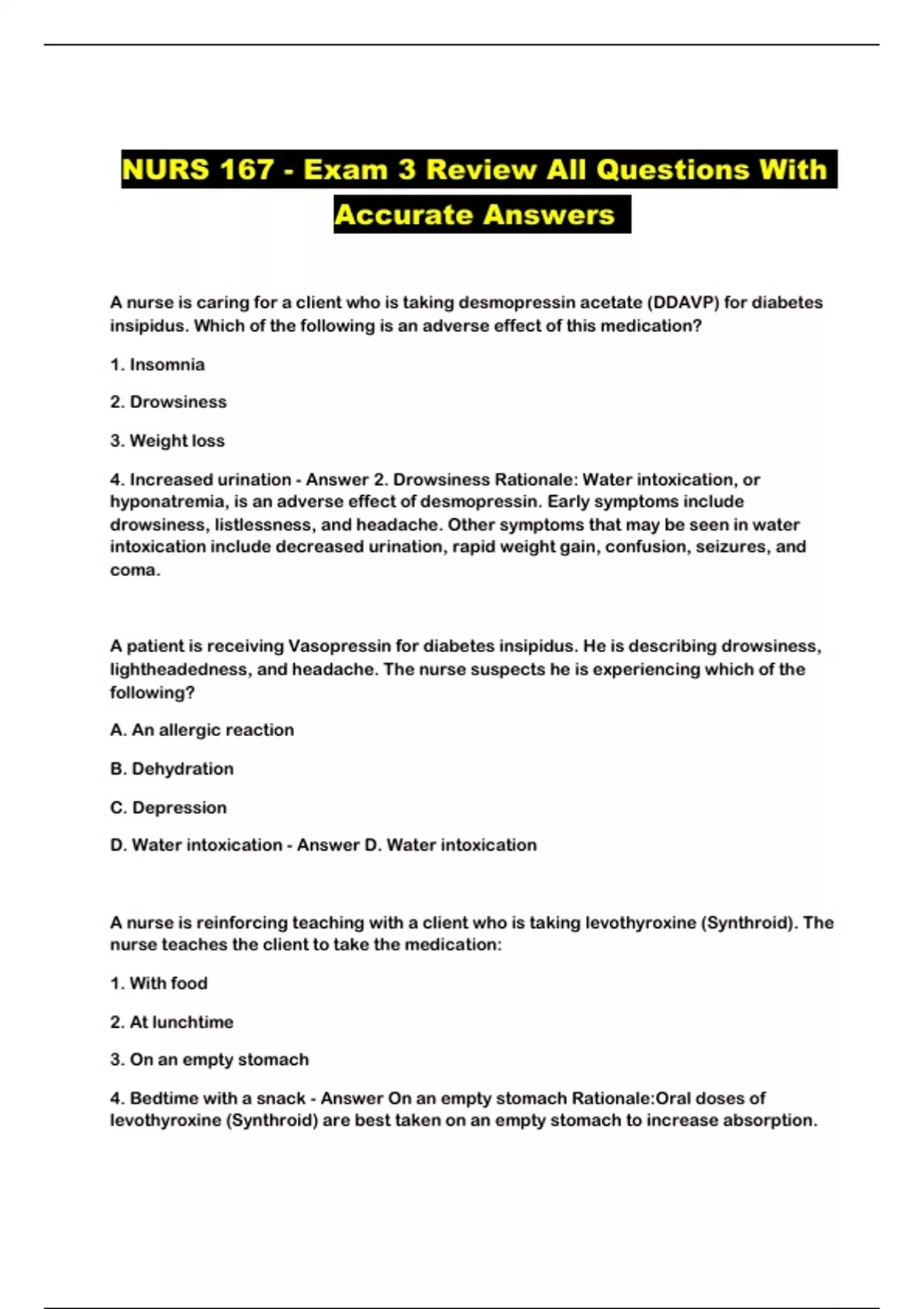 NURS 167 - Exam 3 Review All Questions With Accurate Answers...